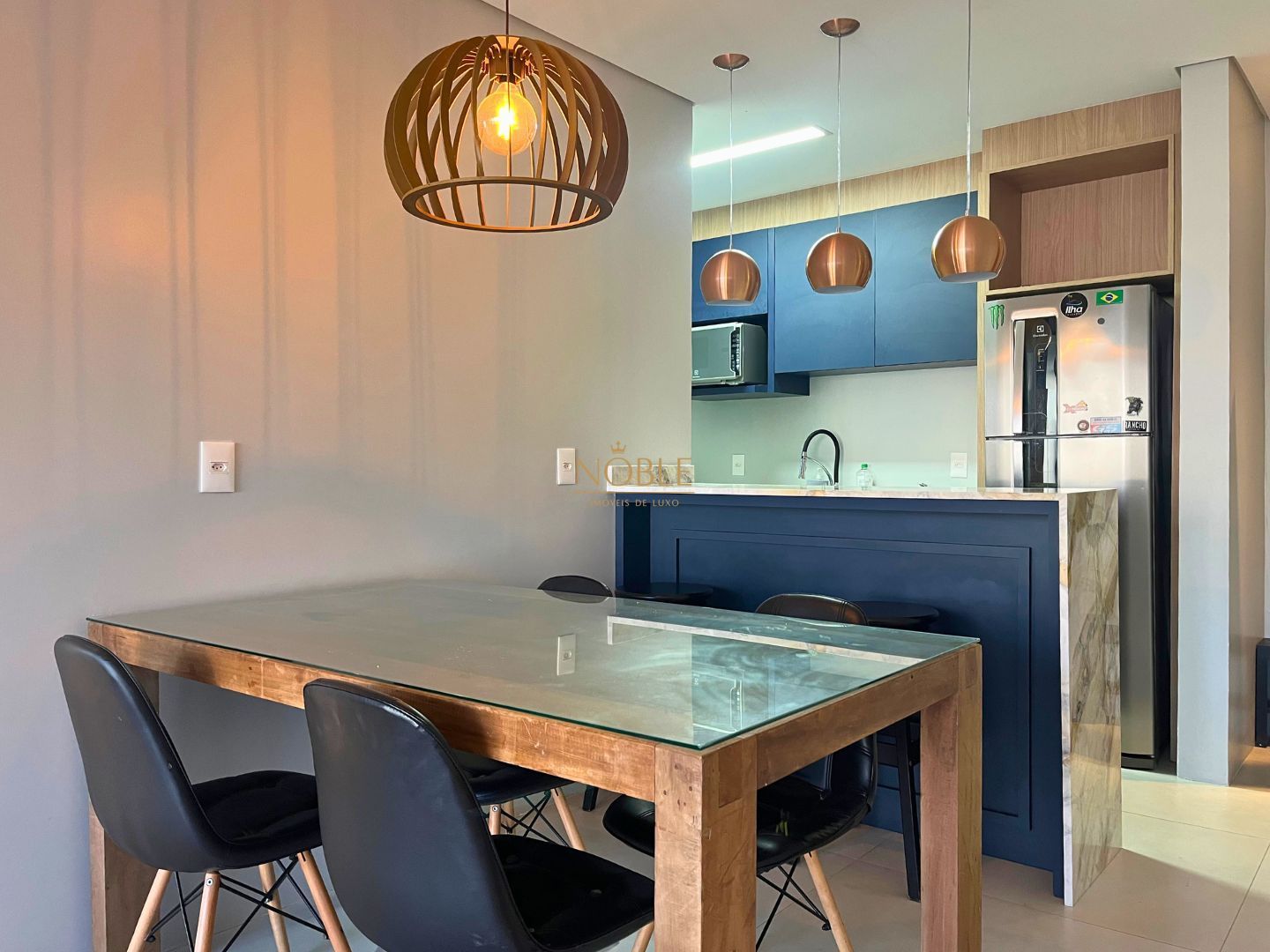 O imóvel conta com 2 dormitórios (sendo 1 suíte), banheiro social, sala de estar aconchegante, cozinha com armários sob medida, varanda, churrasqueira e vaga de garagem privativa. Os ambientes são bem iluminados, com janelas amplas, ar-condicionado instalado e móveis planejados que garantem praticidade no dia a dia.