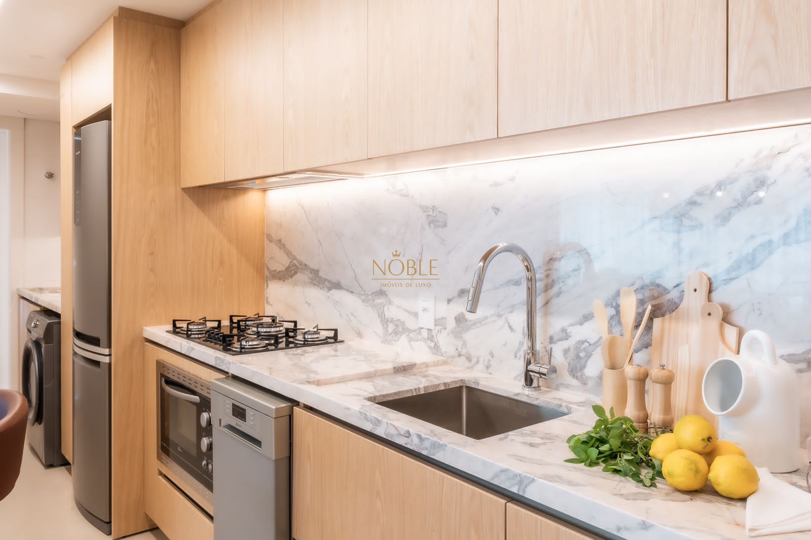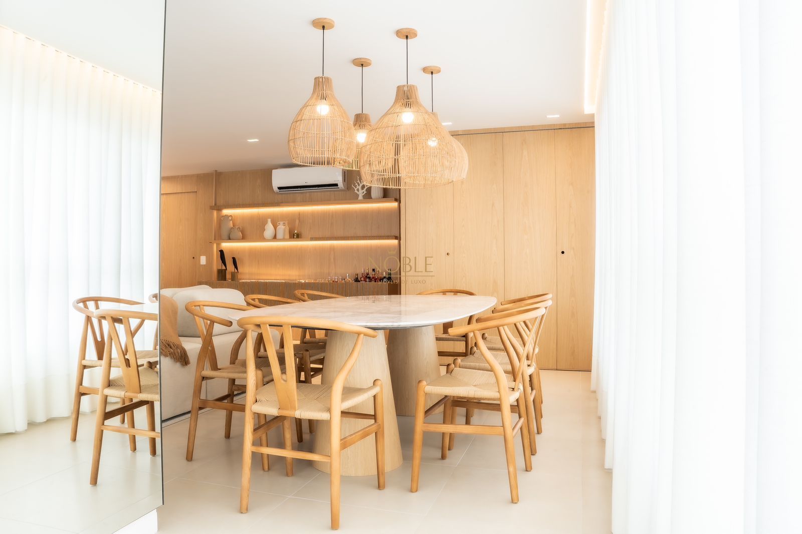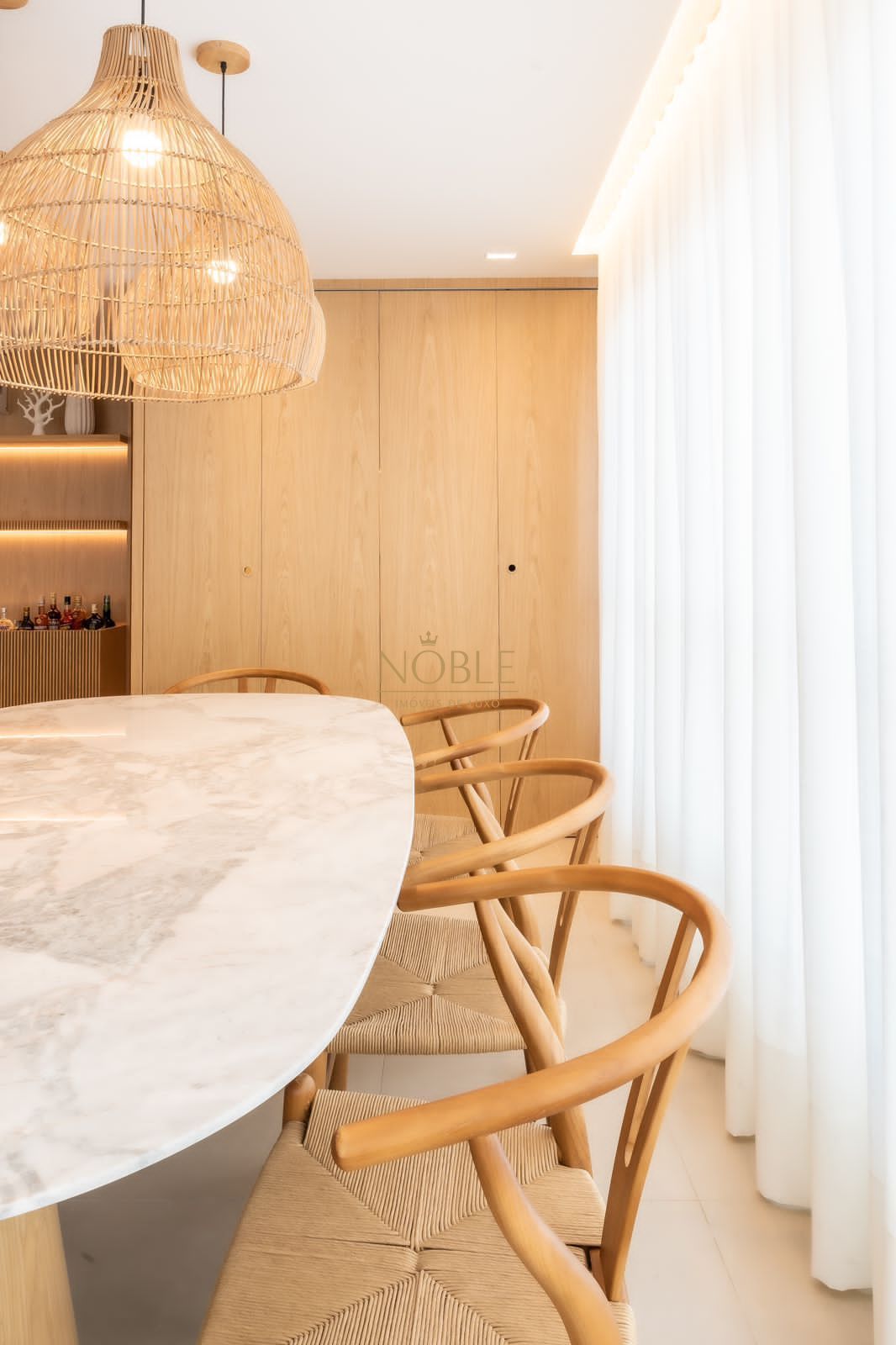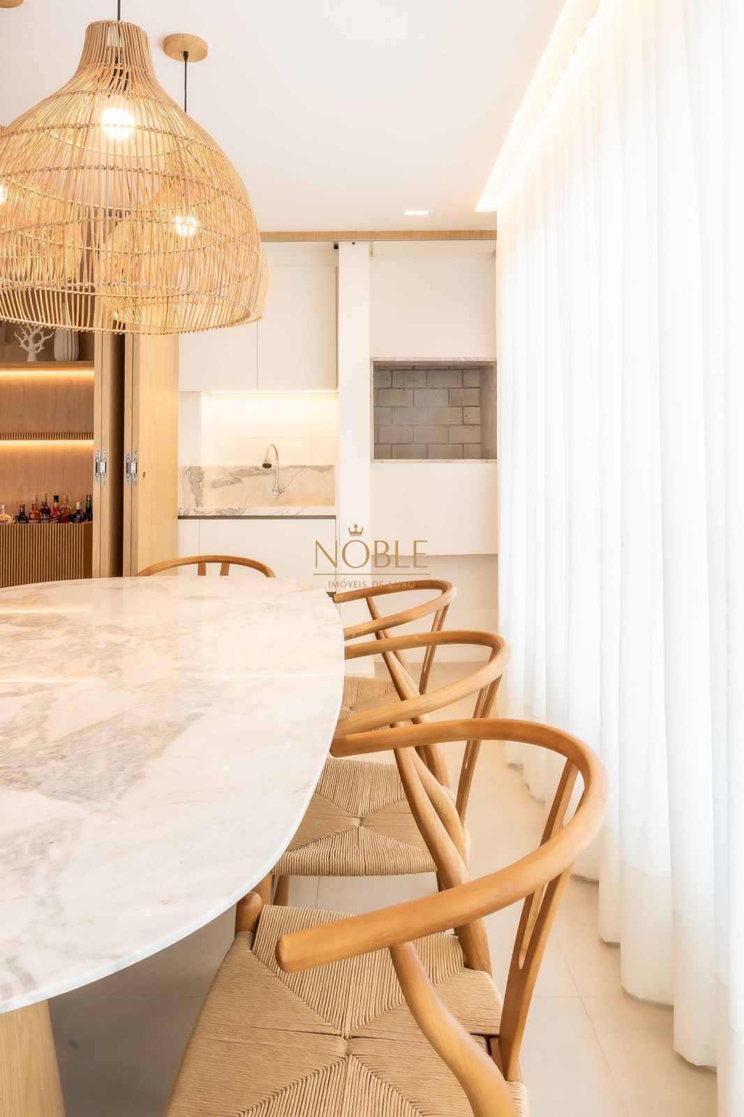 A ampla sala de estar se integra perfeitamente com o ambiente de jantar e o estar social, criando um espaço acolhedor e perfeito para receber visitas ou relaxar no dia a dia. A cozinha é prática, funcional e conta com área de serviço separada, trazendo ainda mais organização à rotina.