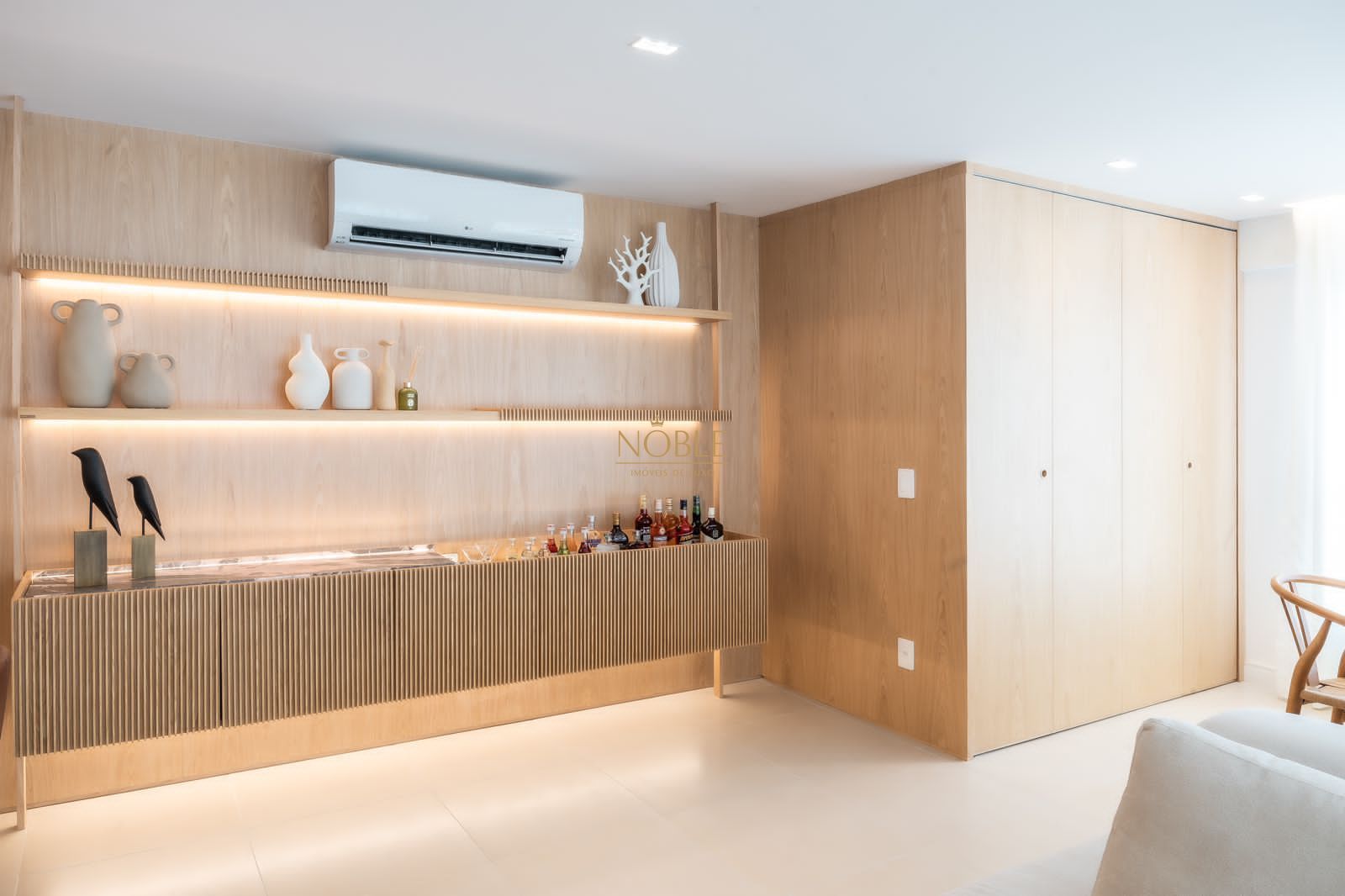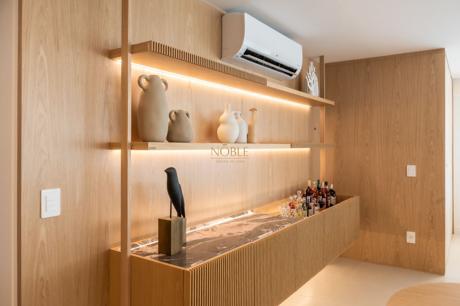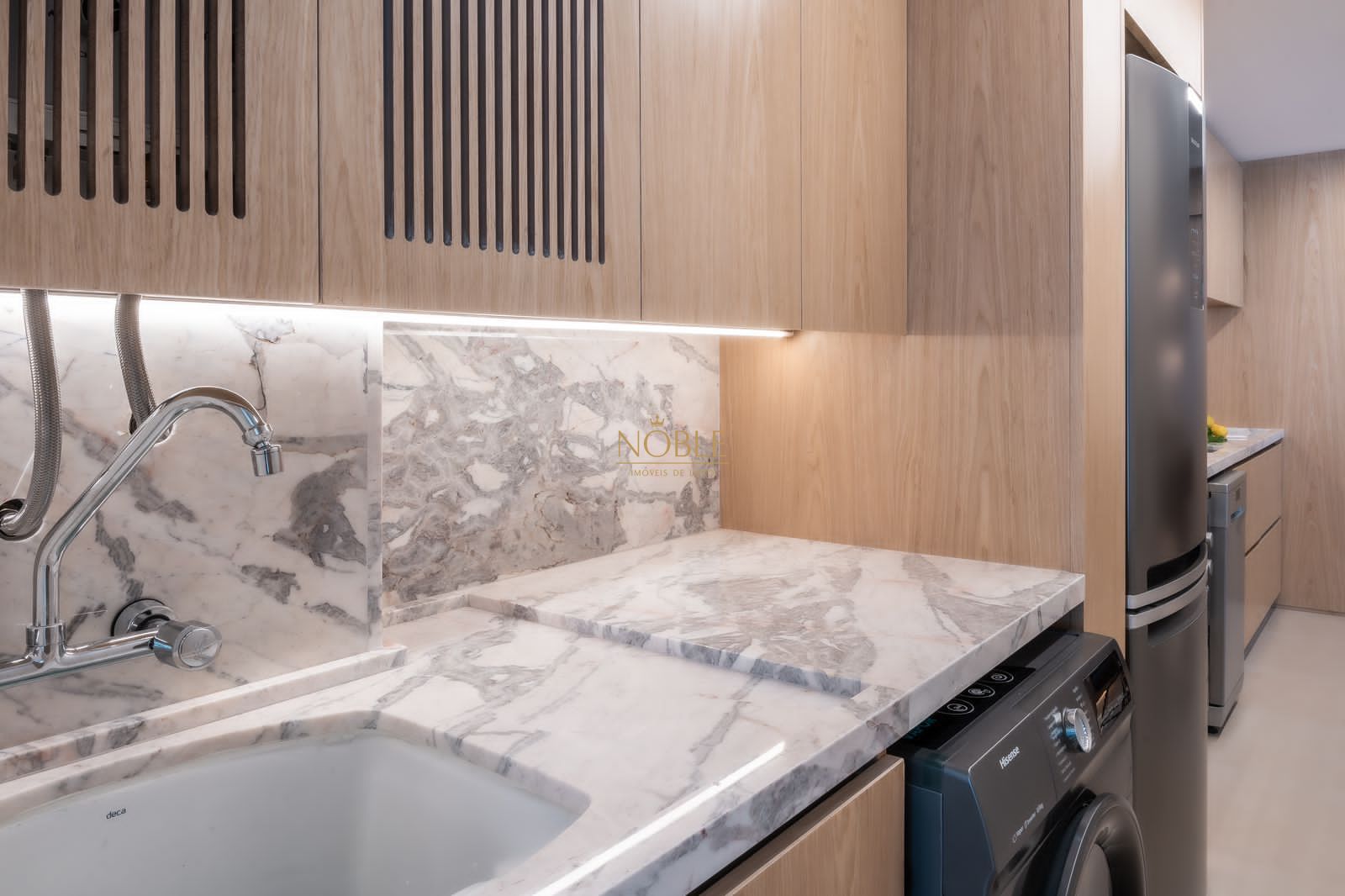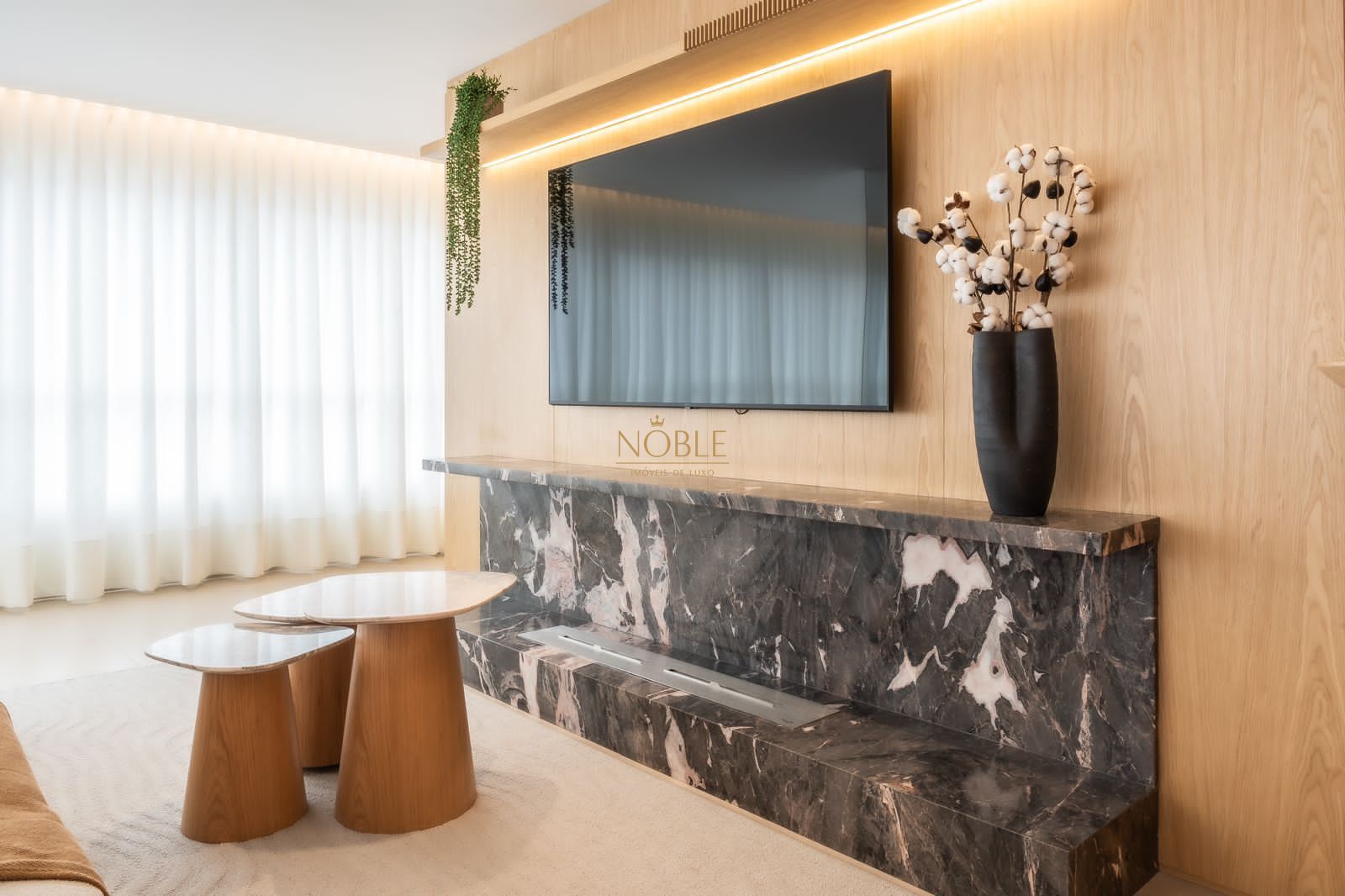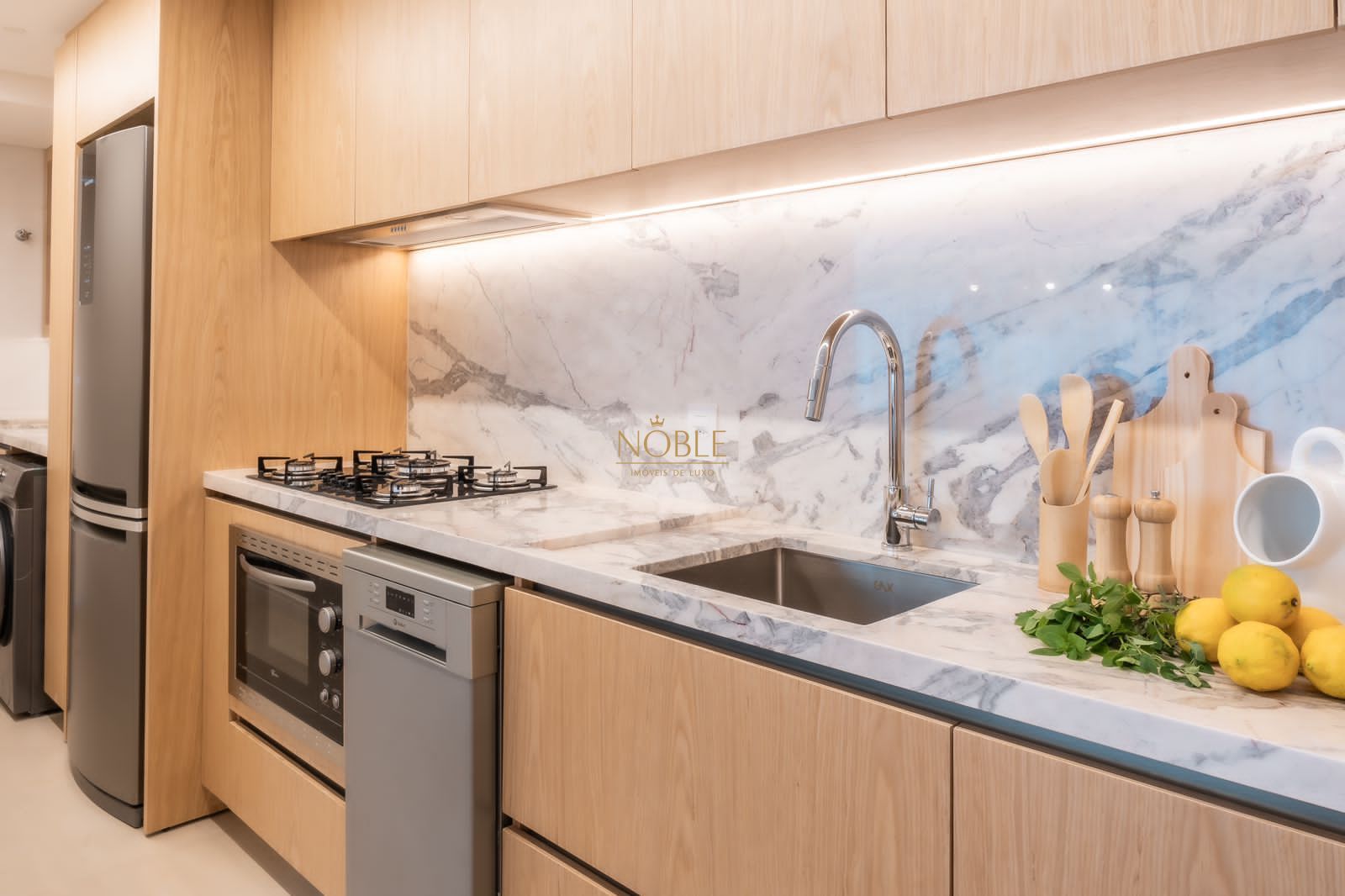 A ampla sala de estar se integra perfeitamente com o ambiente de jantar e o estar social, criando um espaço acolhedor e perfeito para receber visitas ou relaxar no dia a dia. A cozinha é prática, funcional e conta com área de serviço separada, trazendo ainda mais organização à rotina.
