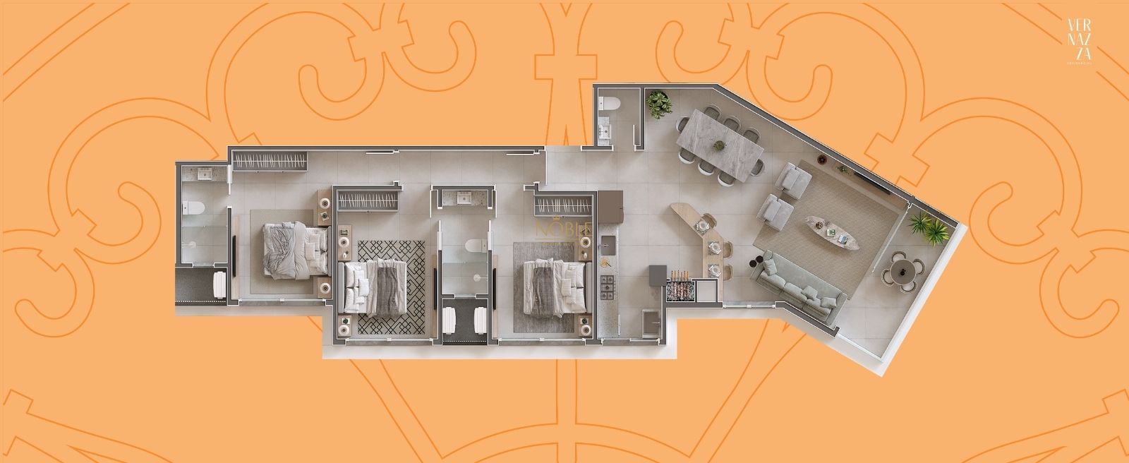 Funcionalidade e equilíbrio definem este apartamento. Com um layout inteligente, essa planta organiza os ambientes de forma prática, mantendo a integração dos espaços sociais sem abrir mão da privacidade. A presença da sacada aberta amplia a experiência do morar, trazendo leveza e conexão com o exterior. Ideal para quem busca um apartamento versátil, com um projeto que se adapta bem à rotina e aos momentos de lazer.