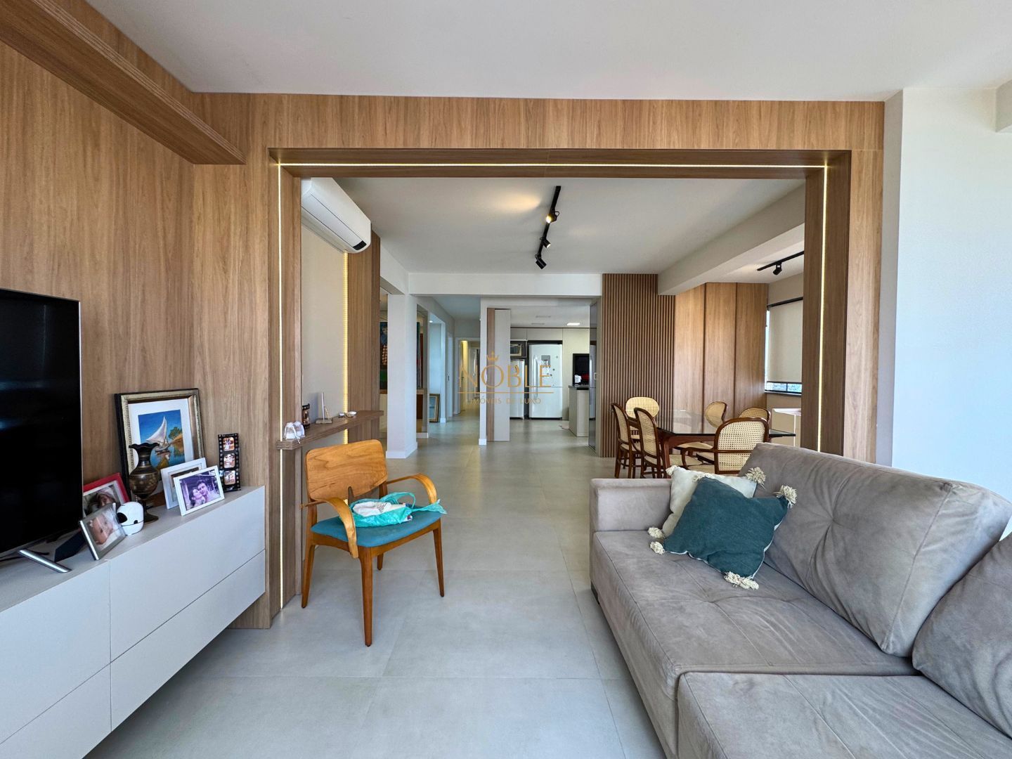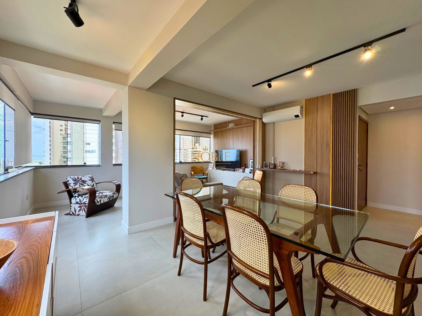São amplos ambientes integrados, com sala de estar e jantar, cozinha planejada, área de serviço, varanda e uma sacada espaçosa com churrasqueira, ideal para reunir amigos e familiares.