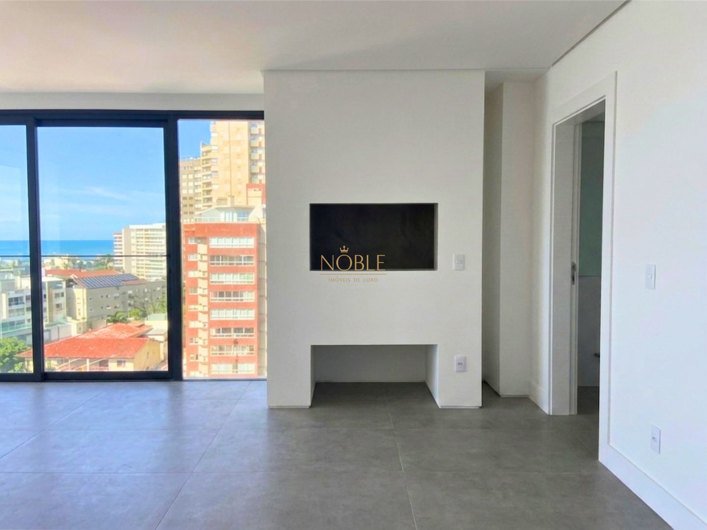 Estética Impecável: Pisos em grandes formatos e portas pivotantes imponentes que refletem seu sucesso e bom gosto.