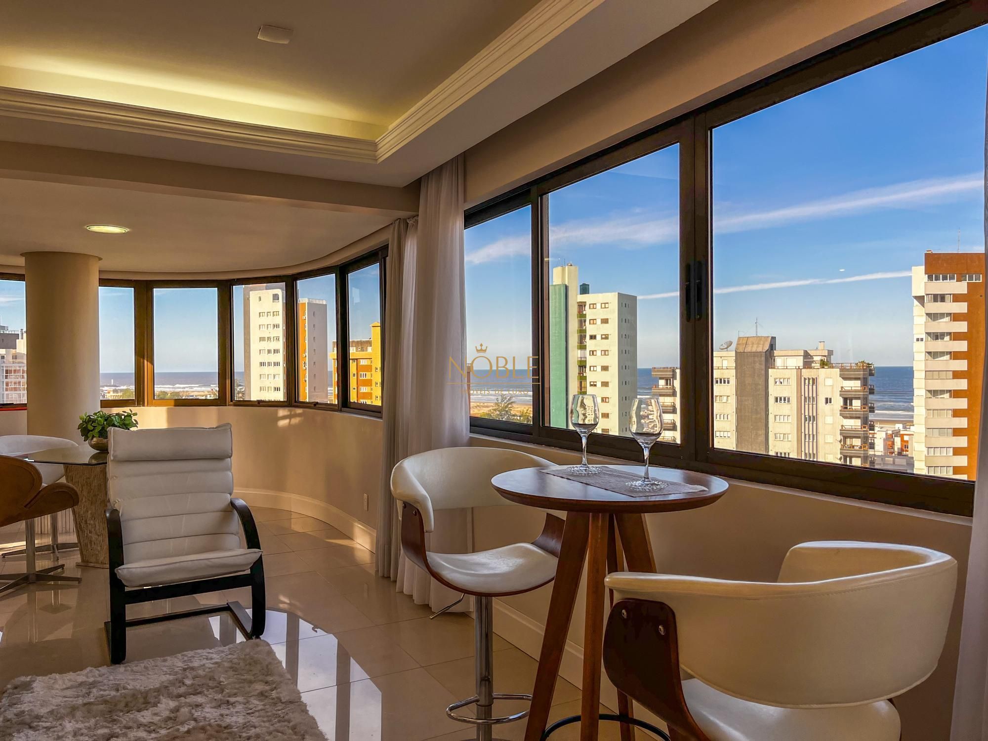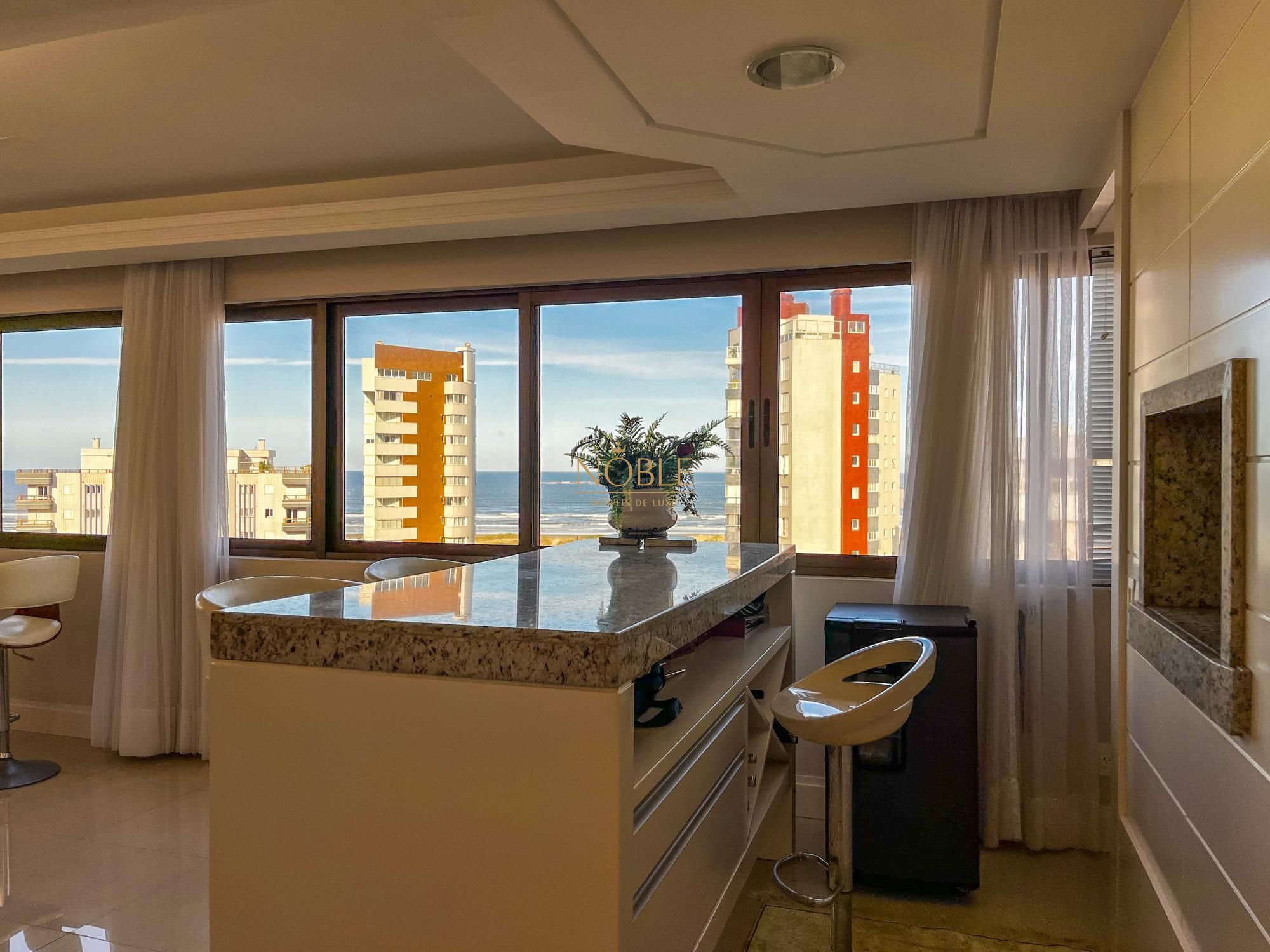Apartamento de luxo, pronto para morar, finamente mobiliado e decorado, com vista perene para o mar e as quatro praças. Localizado na área mais nobre de Torres, a apenas 250m da praia! Com 212m² privativos, possui 03 suítes (uma master com closet), amplo living com lareira, churrasqueira, cozinha individual, e duas vagas de garagem. Infraestrutura completa com piscina, salão de festas, academia e elevador privativo.