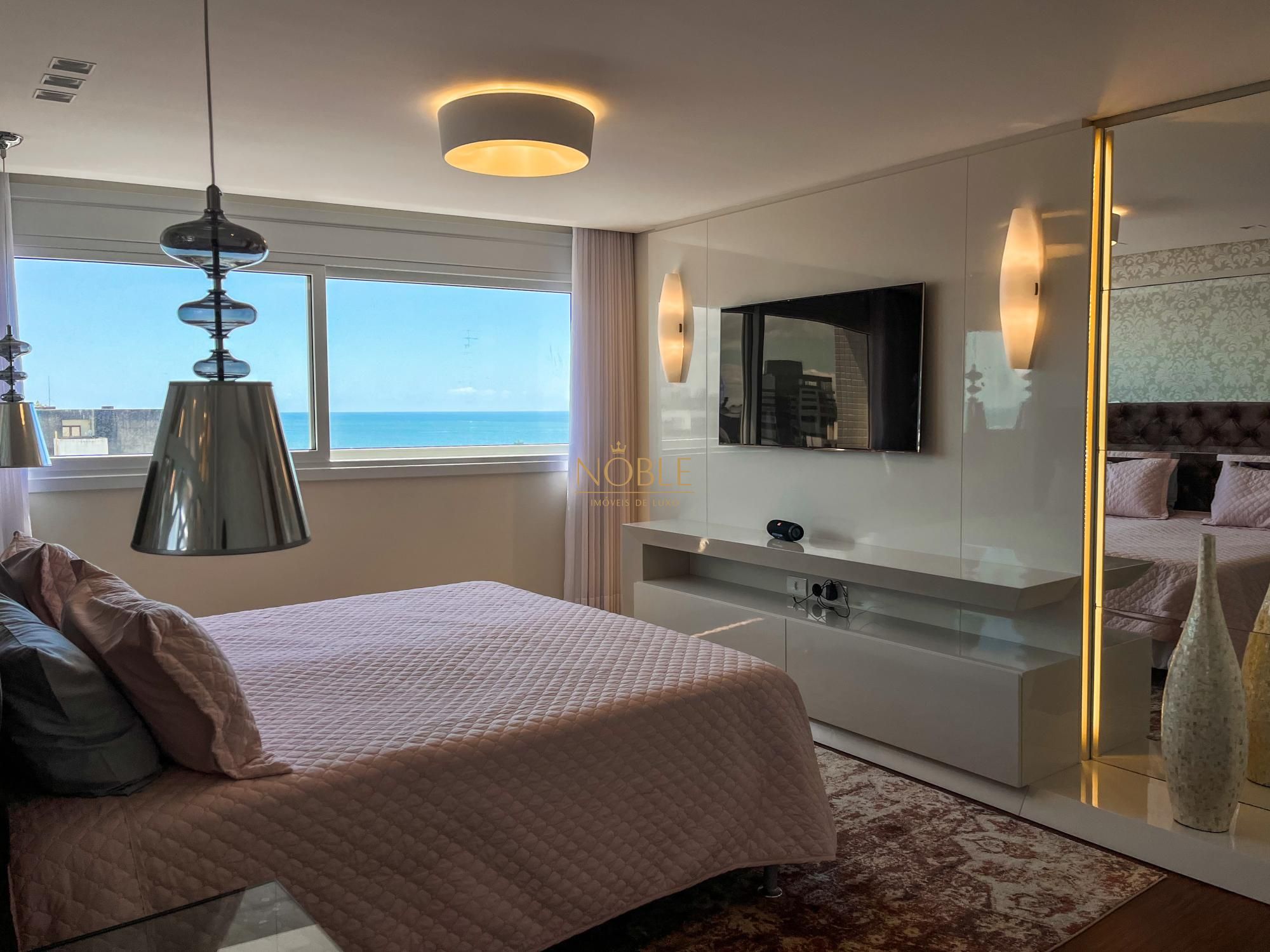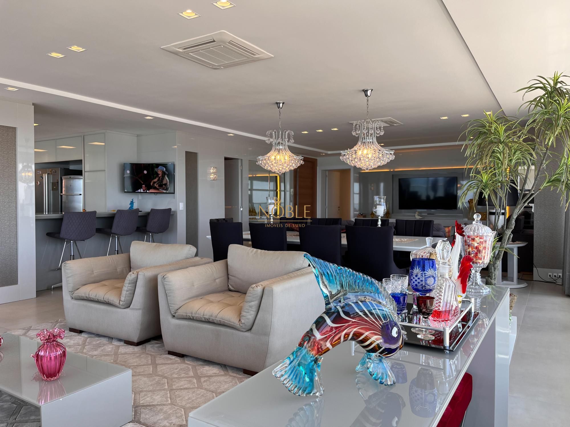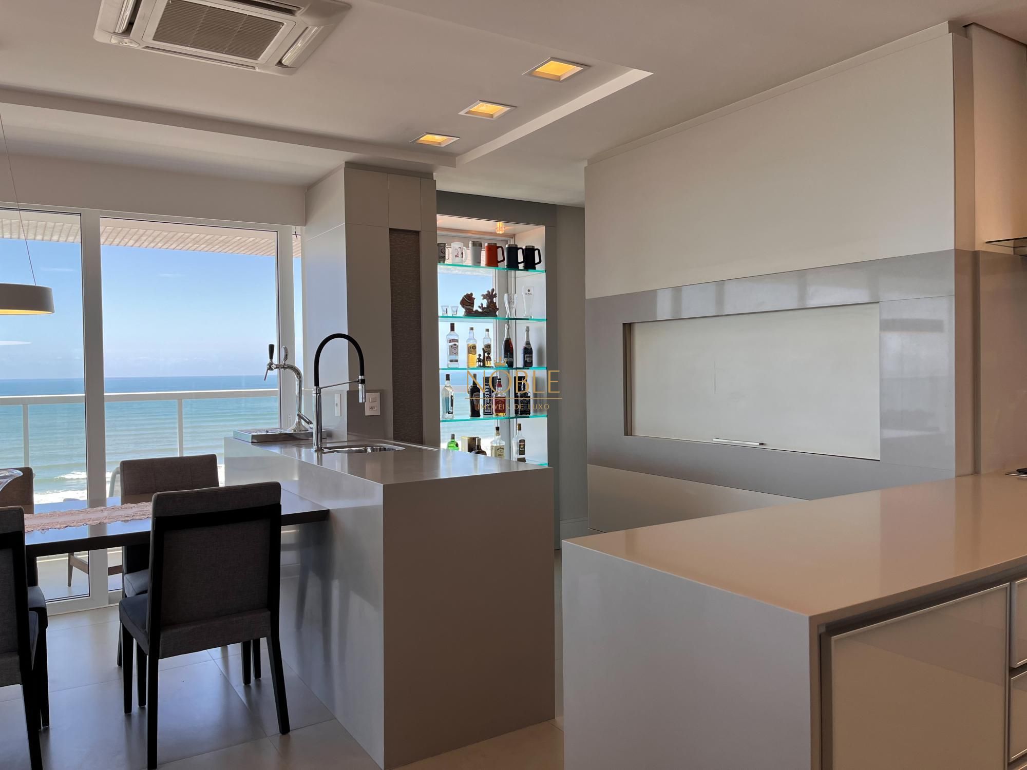 Apartamento composto por 4 suites, sendo 1 umastes com hidro, ampla sacada com vista plena para o mar, living 3 ambientes, cozinha americana, churrasqueira, banho de serviço, lavabo, area de serviço, garagem para 3 carros.