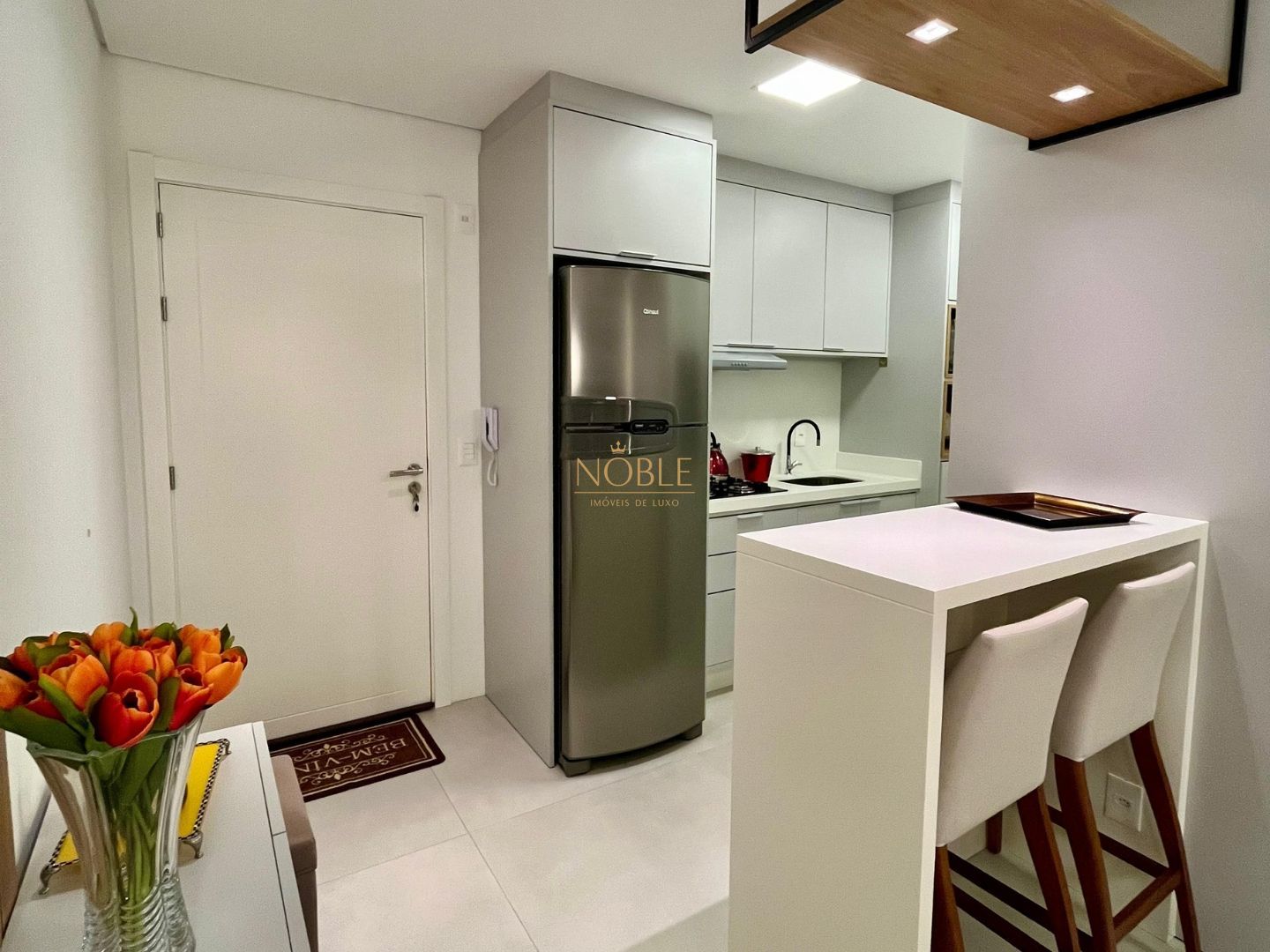 Charmoso apartamento no 12º andar do Condomínio Vesta, localizado no Centro de Torres. Com 49 m² de área privativa, o imóvel possui 1 suíte, sala de estar integrada à cozinha americana, móveis planejados e uma ampla janela que oferece uma bela vista para o mar.