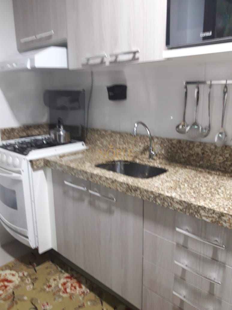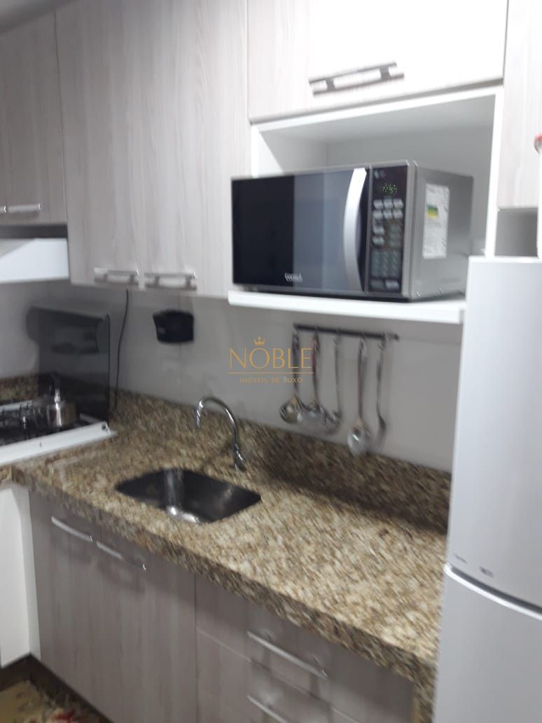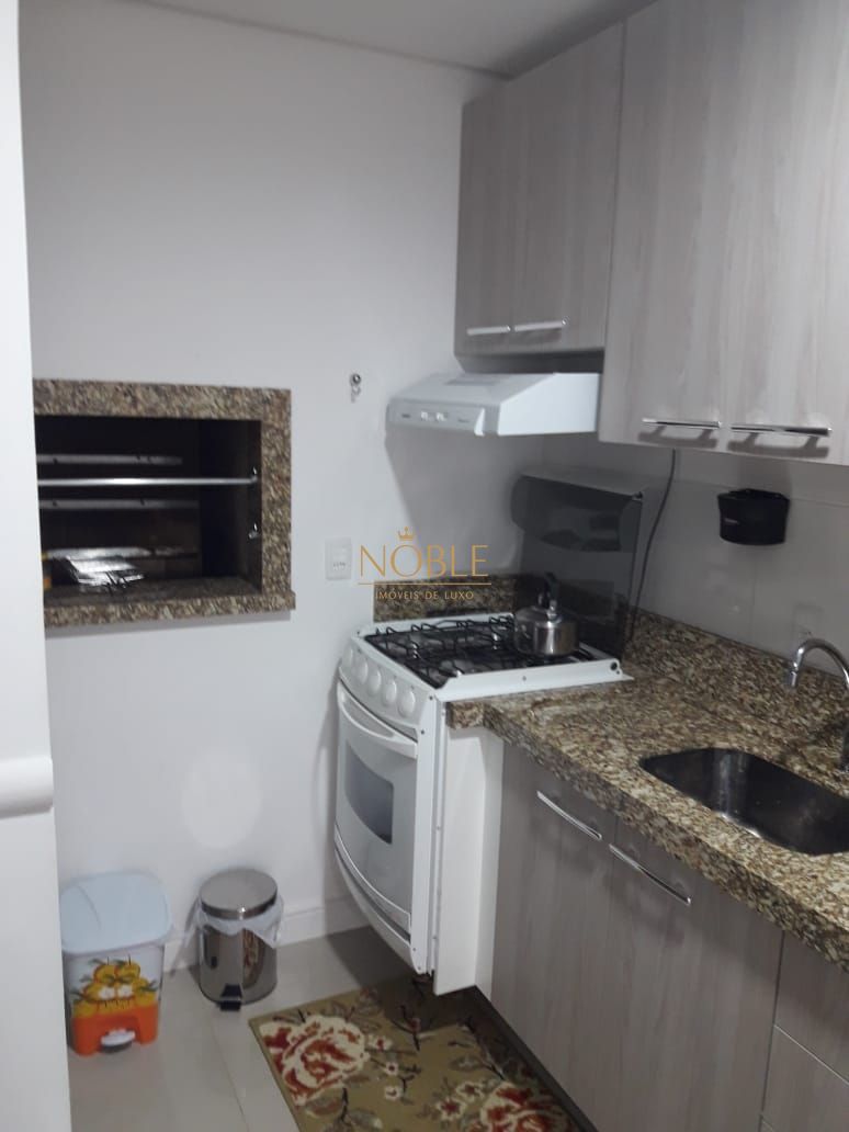 São 1 suítes, lavabo, cozinha com churrasqueira, sacada com vista para o mar e vaga dupla de garagem.