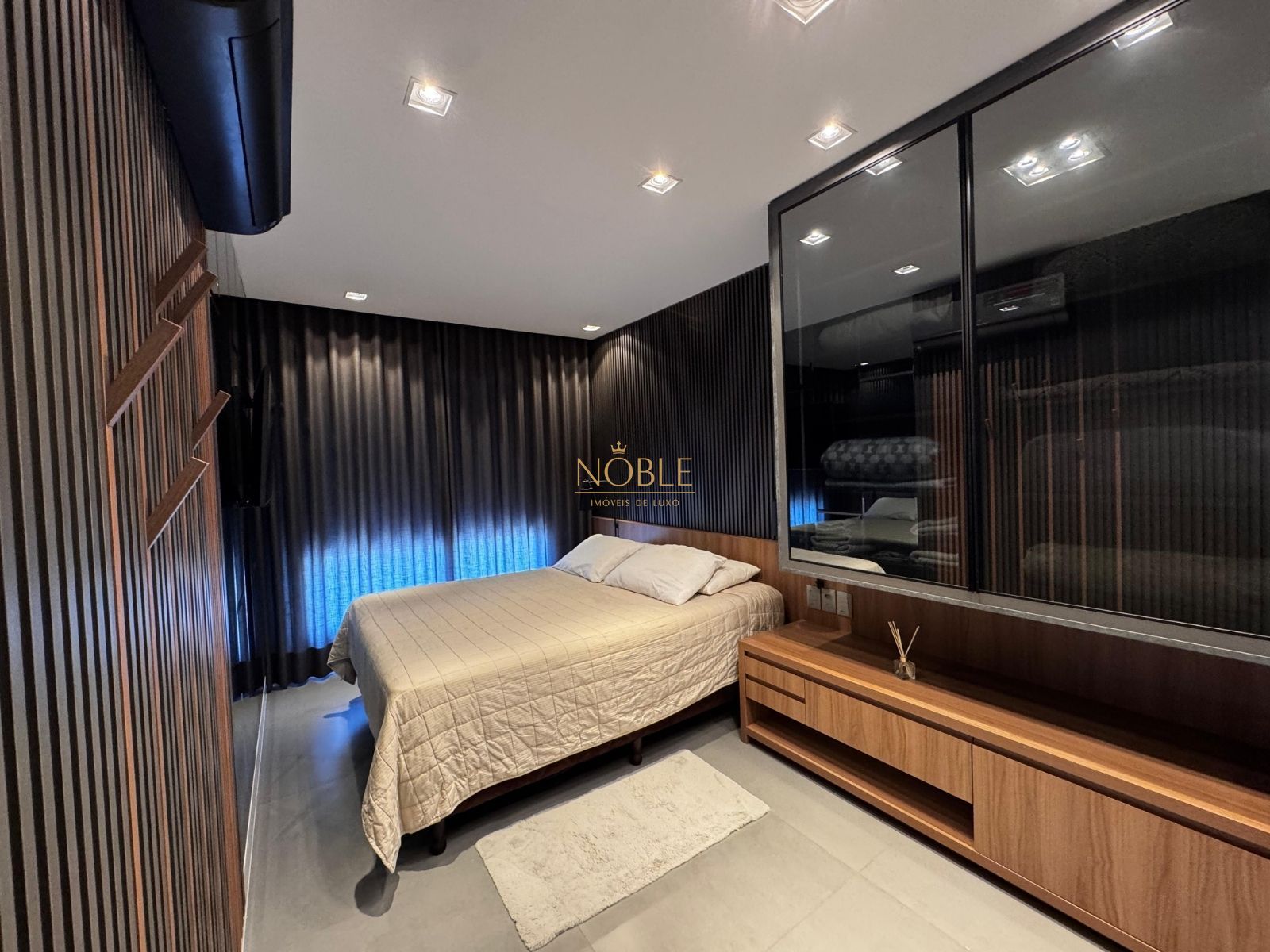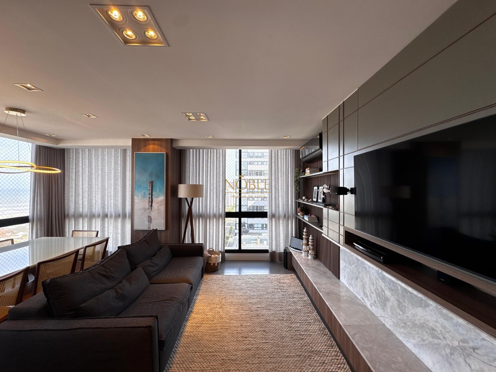 O imóvel conta com 2 dormitórios (1 suíte), sala de estar e jantar integradas, cozinha planejada com churrasqueira, banheiro social, área de serviço, varanda fechada em vidro com vista e vaga de garagem privativa. Ambientes com móveis planejados e acabamentos modernos garantem praticidade e sofisticação.