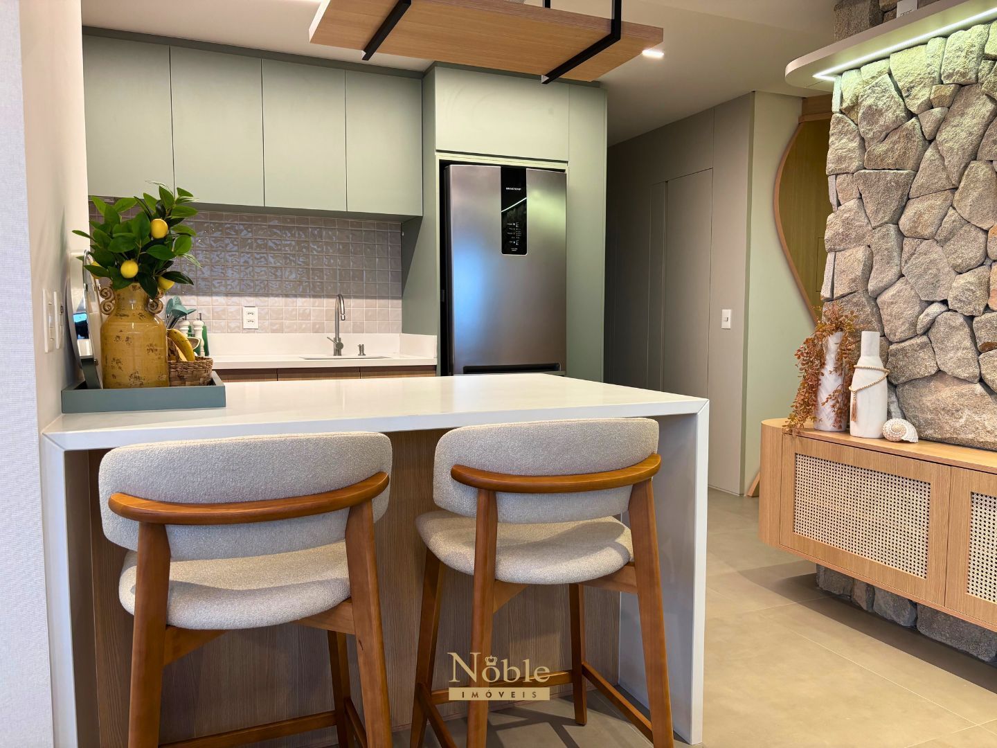Cozinha americana com móveis planejados;