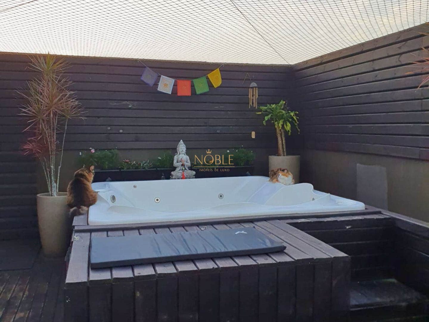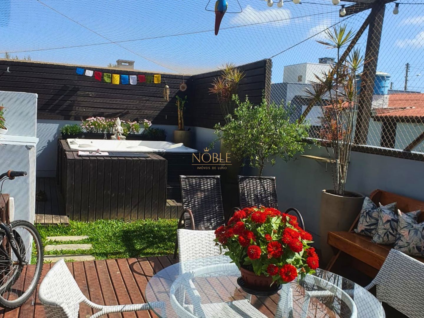 O imóvel conta com banheira de hidromassagem, ar-condicionado, churrasqueira, deck, horta e quintal, oferecendo conforto e lazer para toda a família.