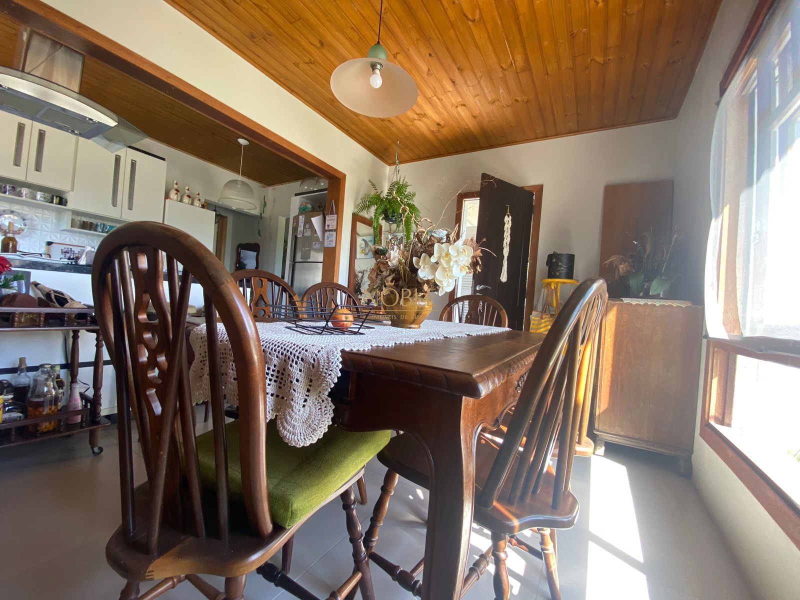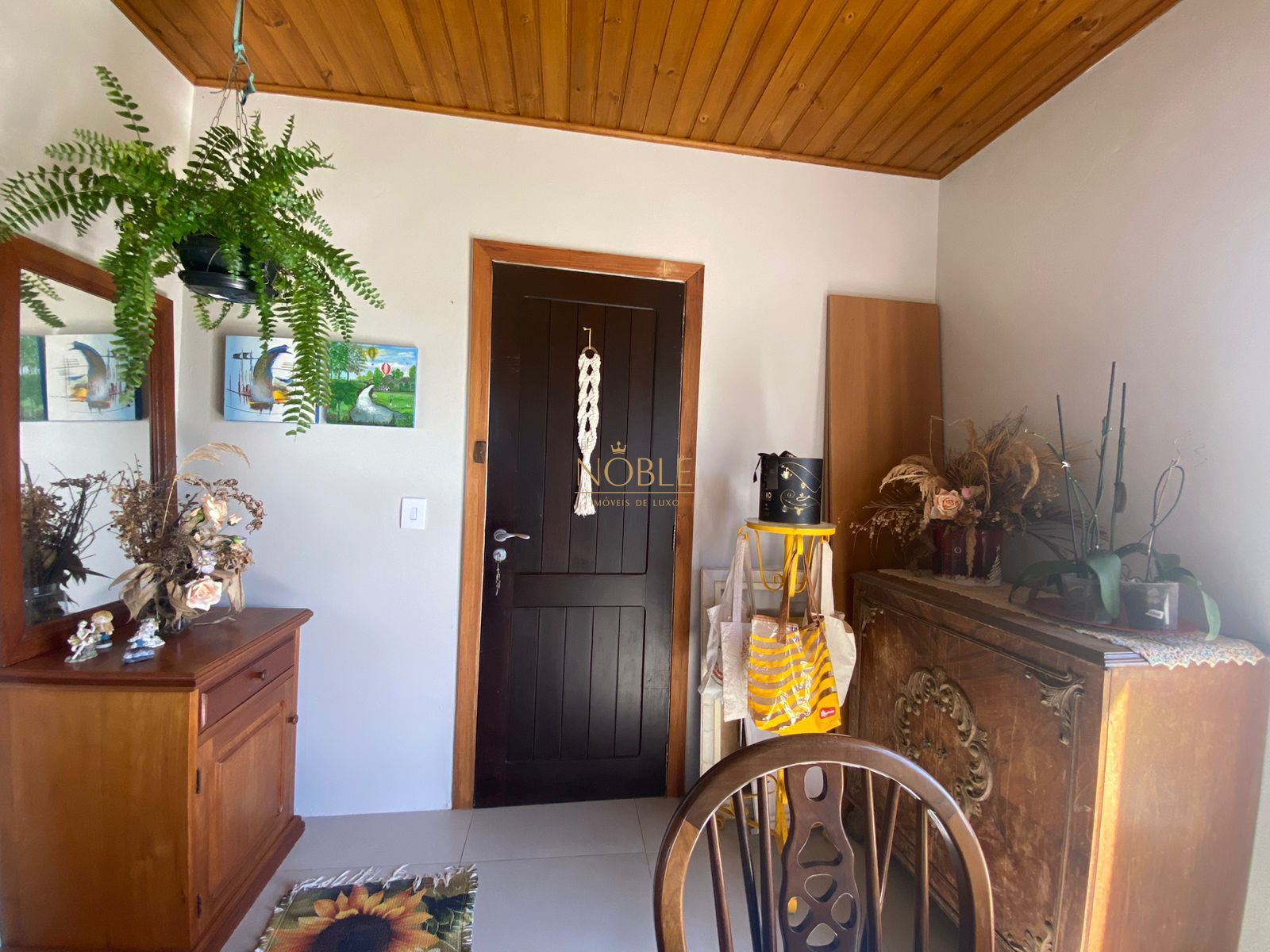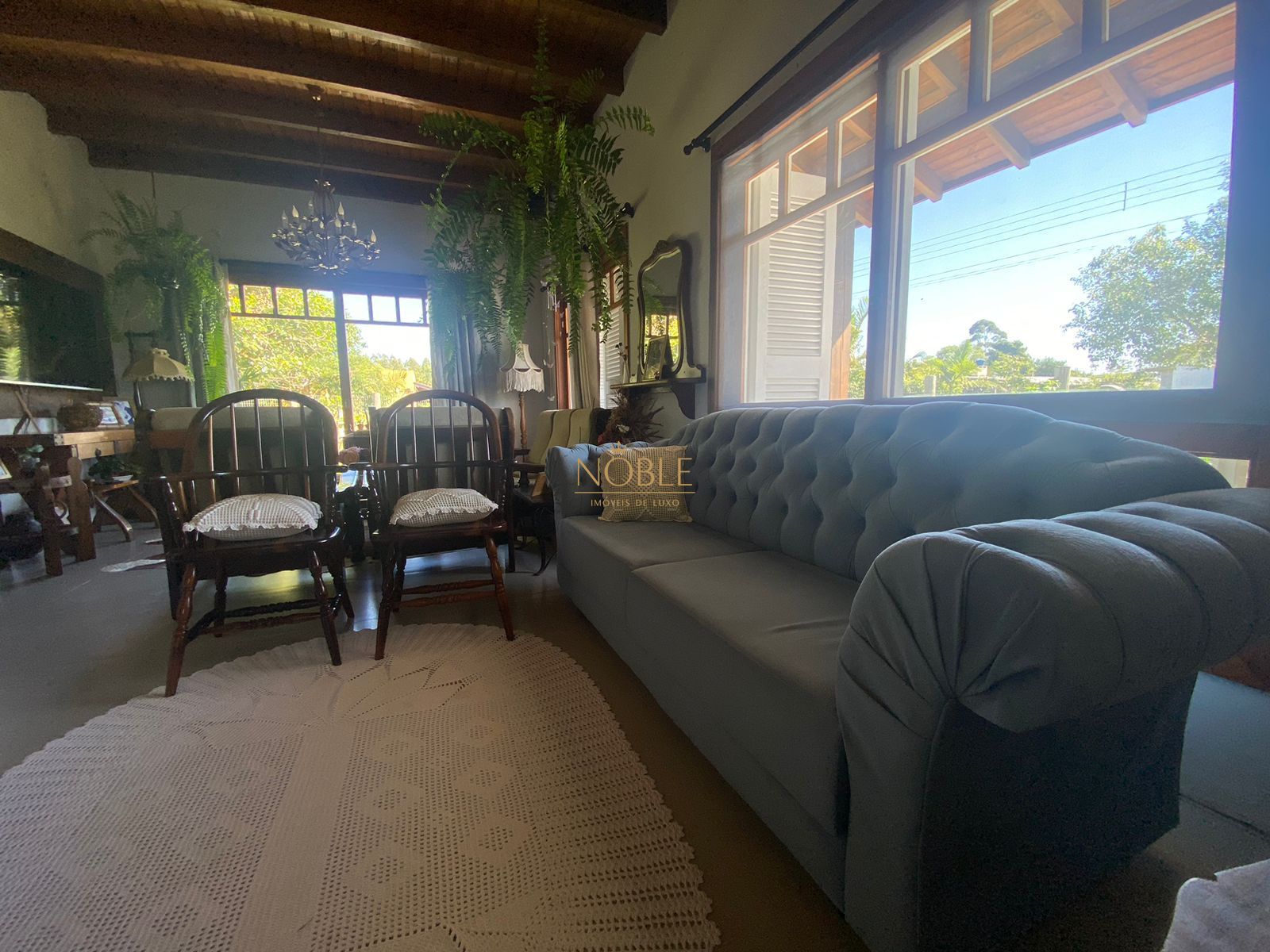 A residência é de construção recente e contrasta harmoniosamente com a decoração vintage, onde diversos itens de mobilia datados a partir dos anos 40, sendo peças únicas em madeira de lei, muito bem preservada e cuidada.