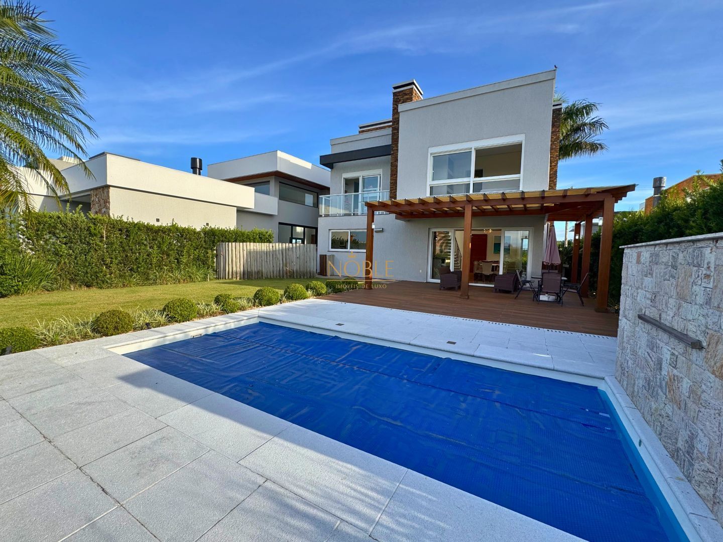 A área externa conta com uma piscina privativa e 4 vagas de garagem (2 cobertas e 2 descobertas). Com janelas amplas, iluminação planejada, acabamentos modernos e uma localização privilegiada fundos para o lago, essa casa é ideal para quem busca qualidade de vida, segurança e contato com a natureza.