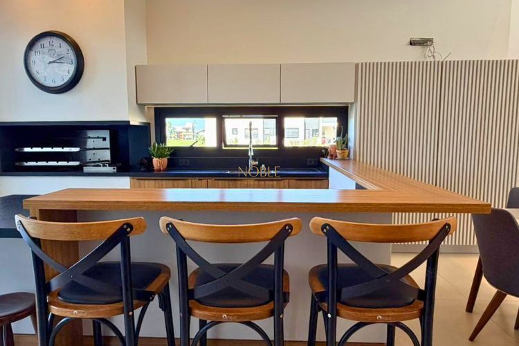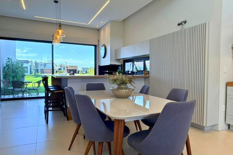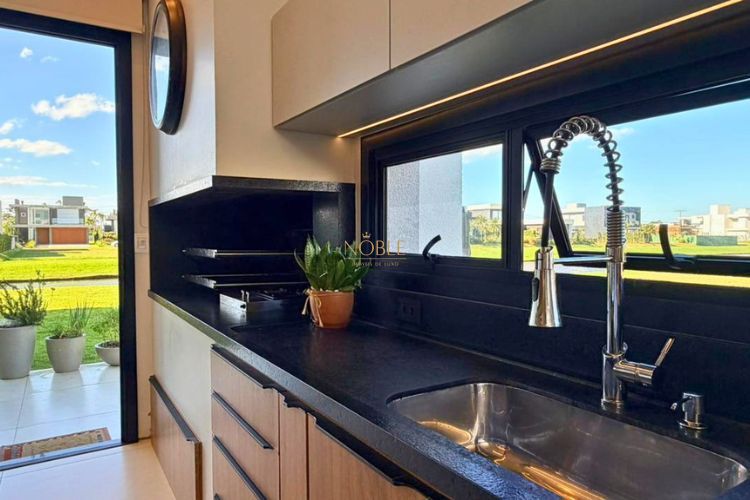 Excelente casa no Condomínio Reserva das Águas, localizado na Mais Bela Praia Gaúcha. Conta com 03 suítes, amplo living integrado com lareira, lavabo, churrasqueira e pátio.