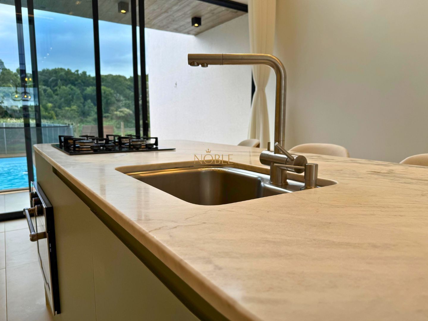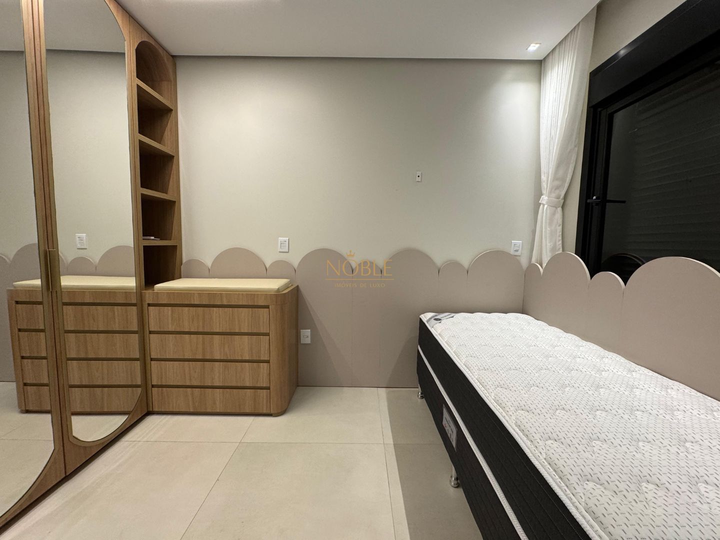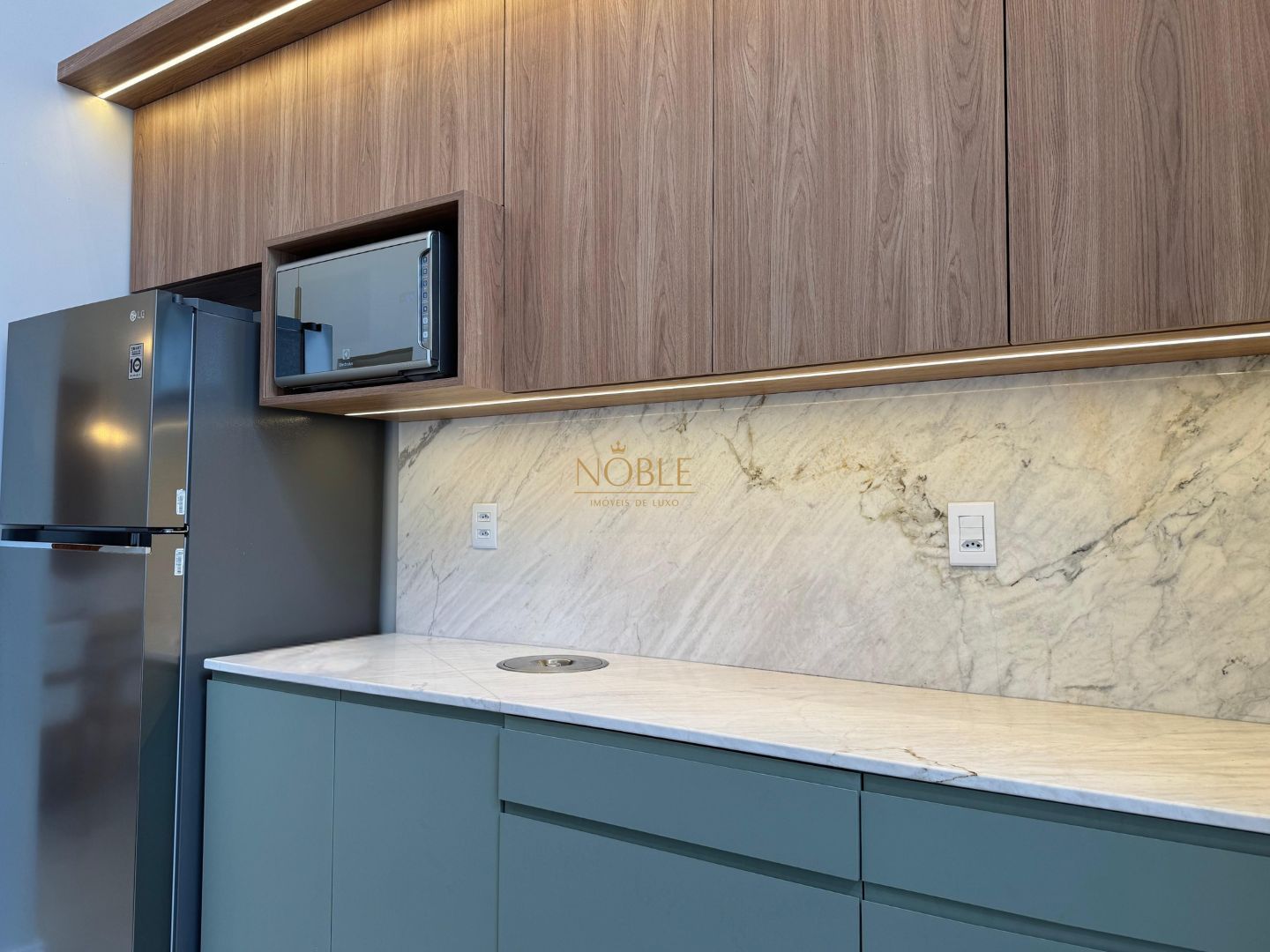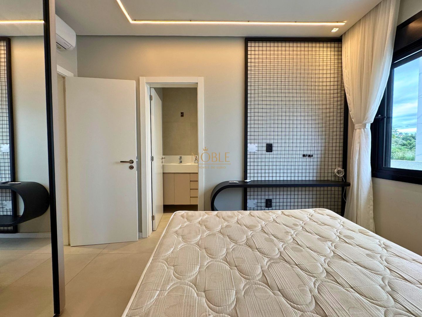 A casa conta com 201m² de área útil, 03 suítes, sala de estar, jantar e cozinha, lavabo, lareira, churrasqueira, espaço coberto para três automóveis,