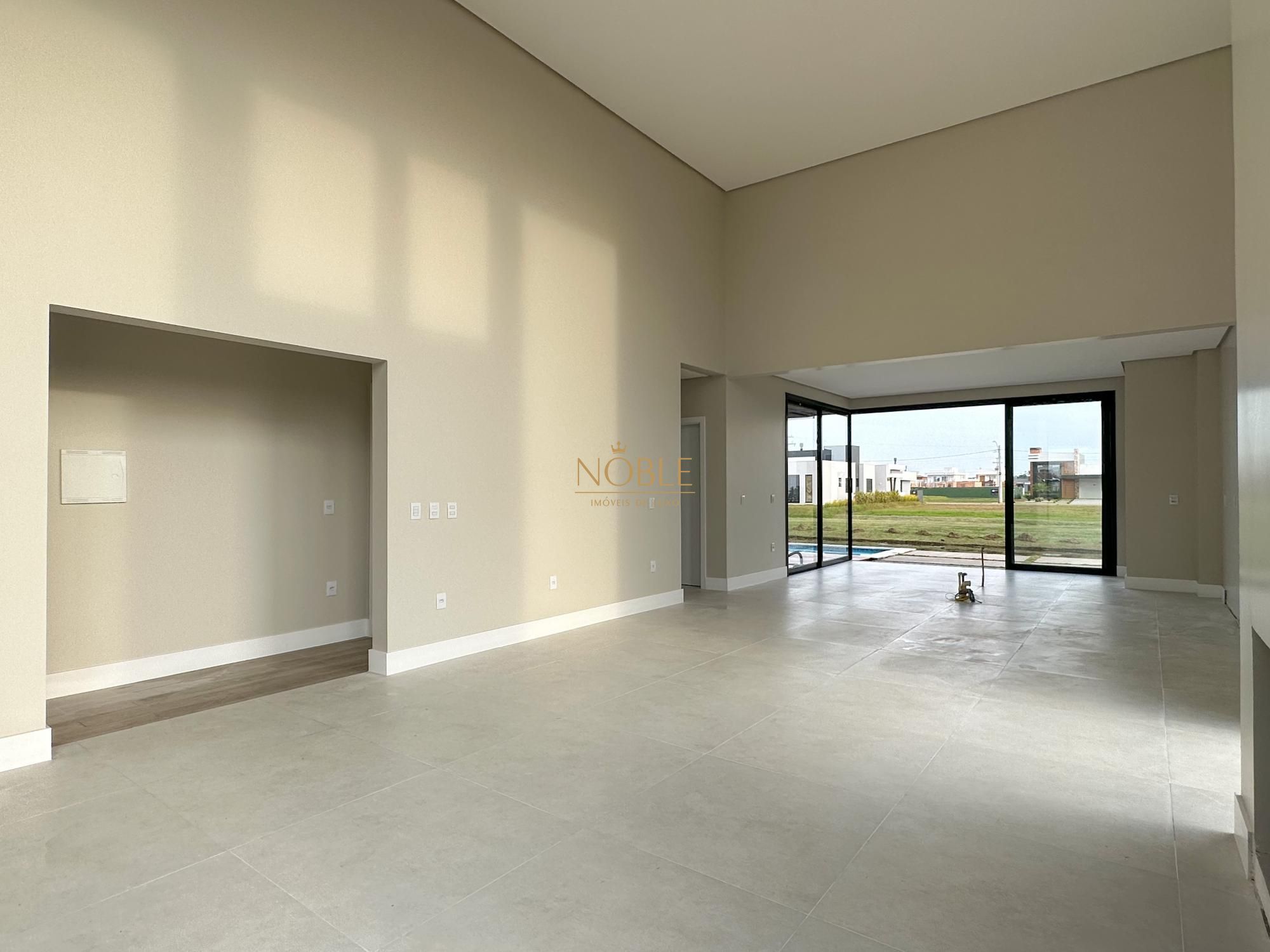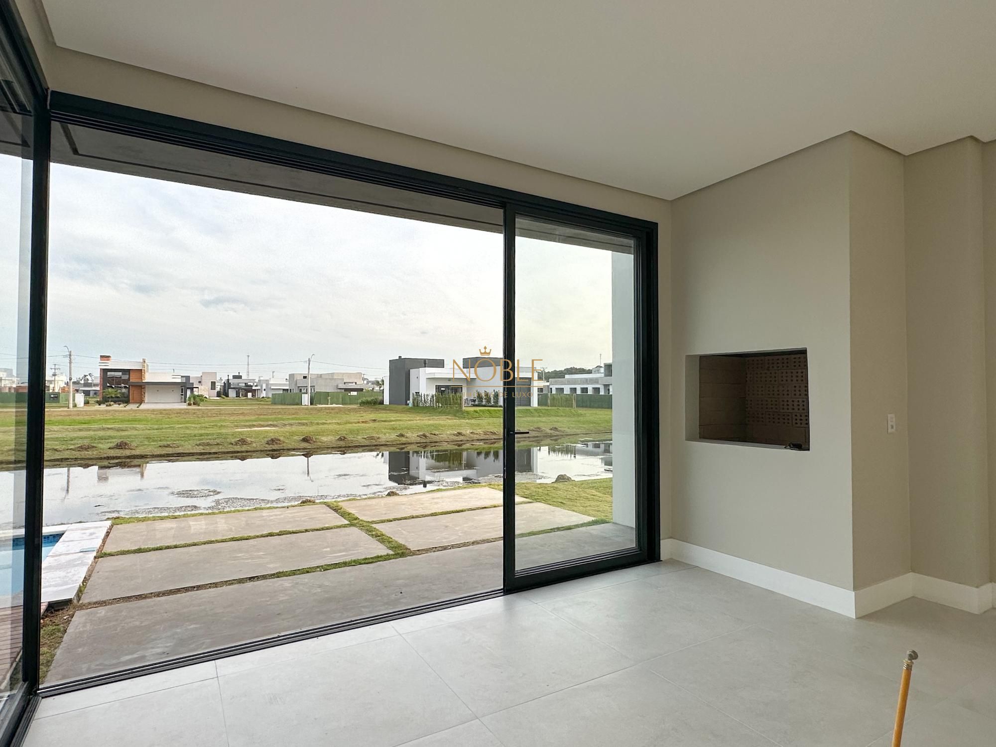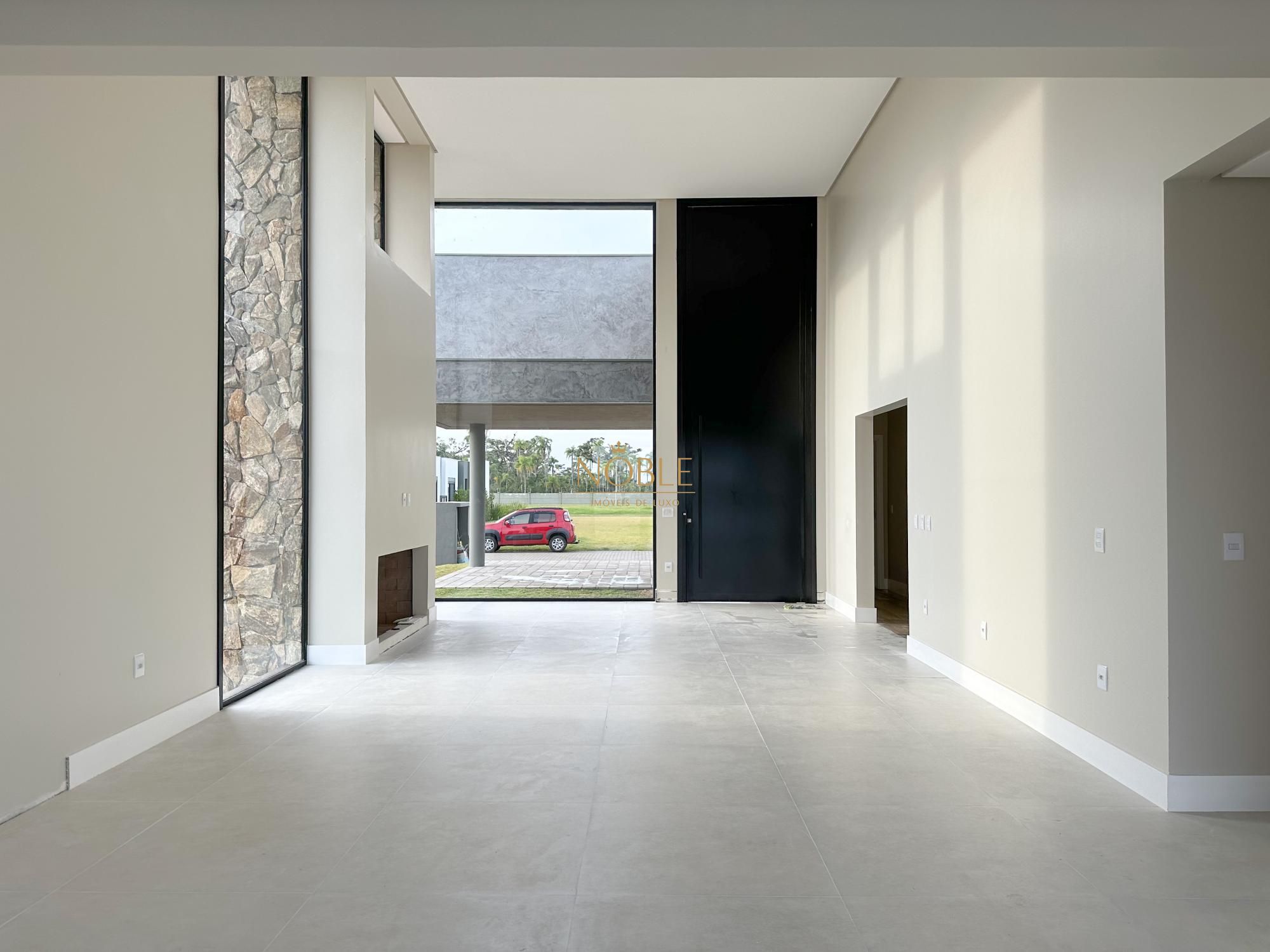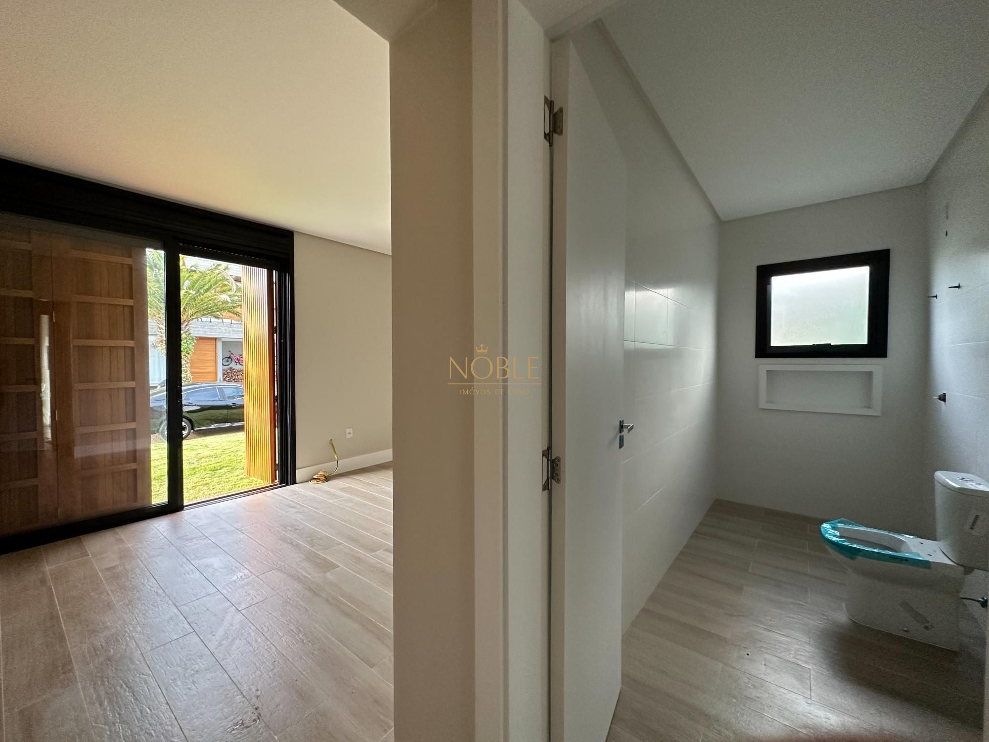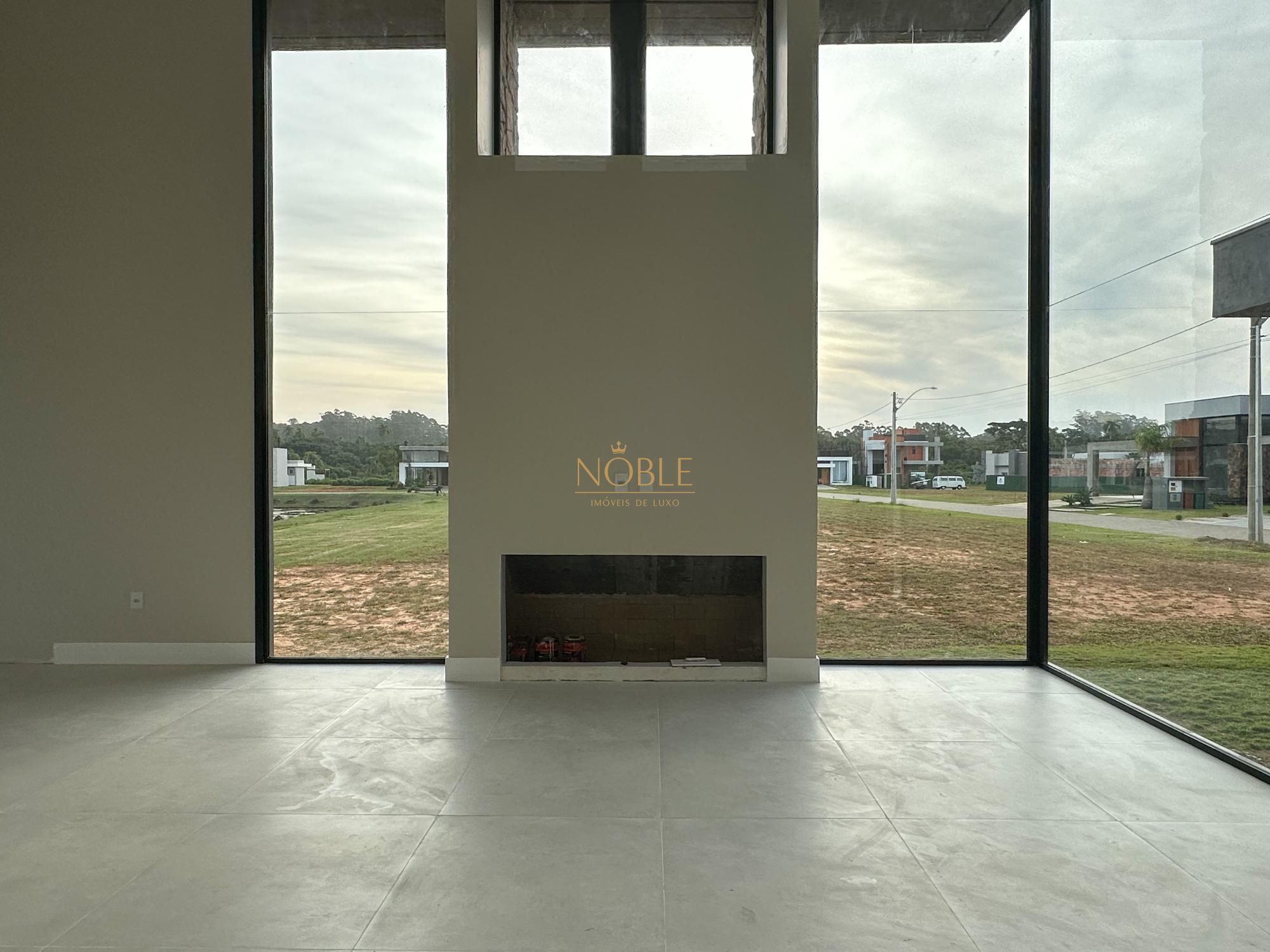 Casa nova com 3 suites, em processo de instalação de mobiliada, pé direito duplo no living, lareira, churrasqueira, deck com piscina, banheiro social, sala de estar e jantar e vaga de garagem coberta para 2 carros.