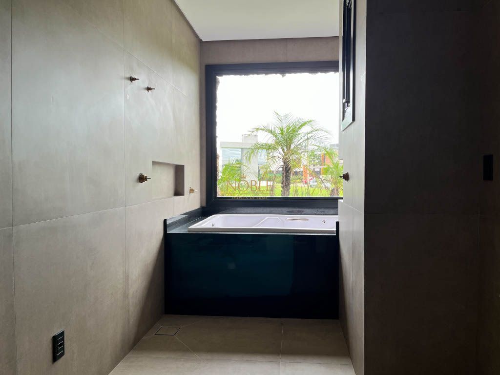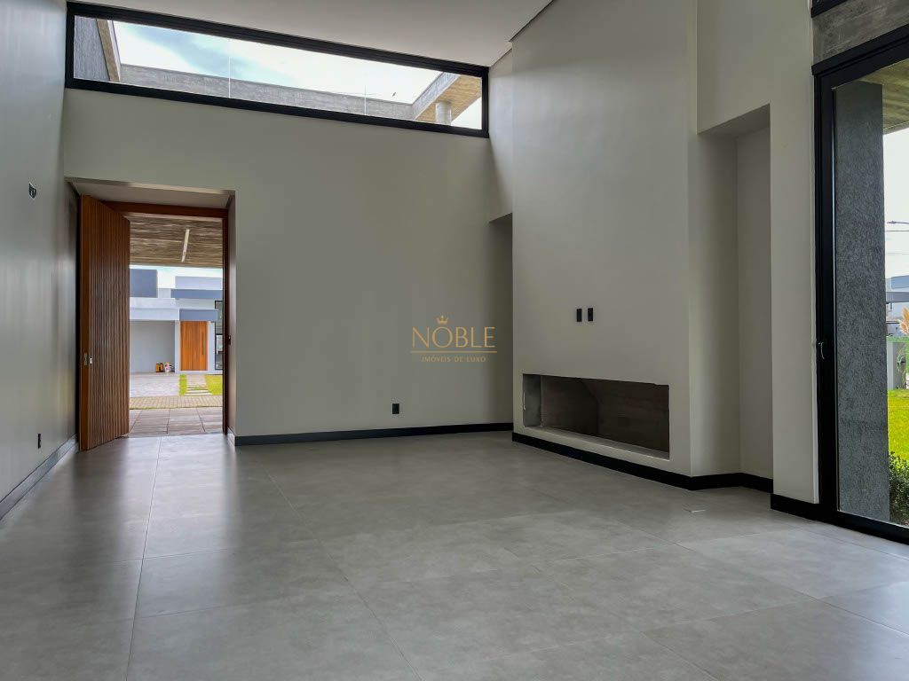 A residência possui quatro suítes, ampla sala com pé direito duplo, cozinha e área de jantar integrados, lavabo, espaço de lazer com varanda e Piscina, área de serviço e também apresenta uma garagem para dois carros.