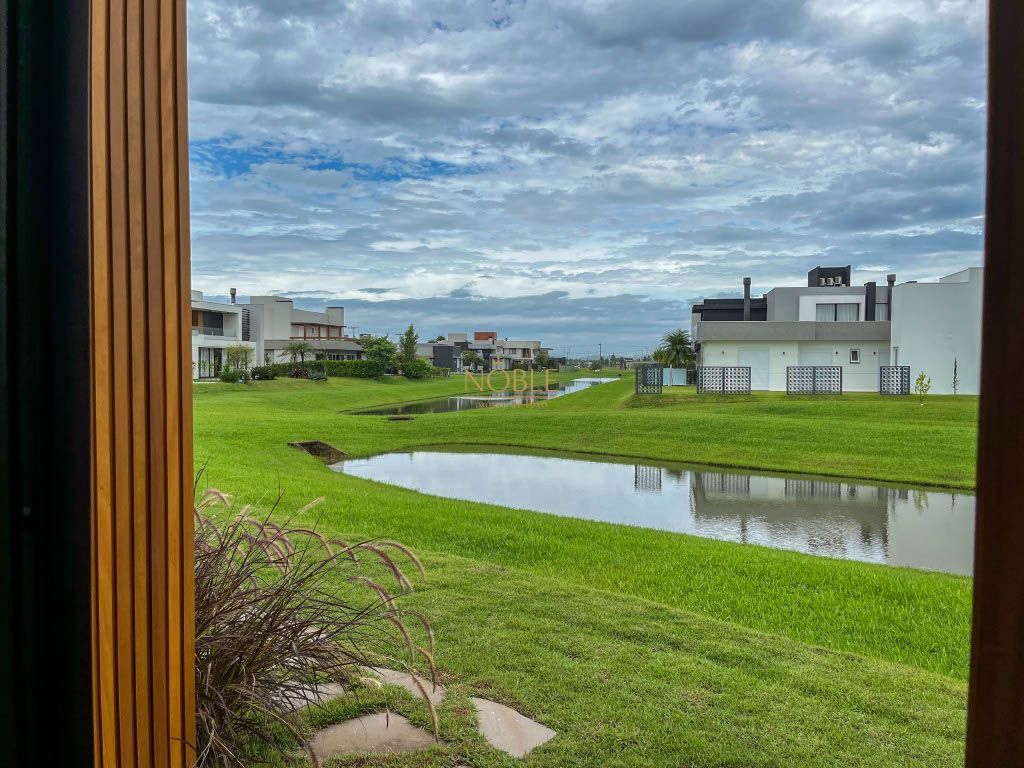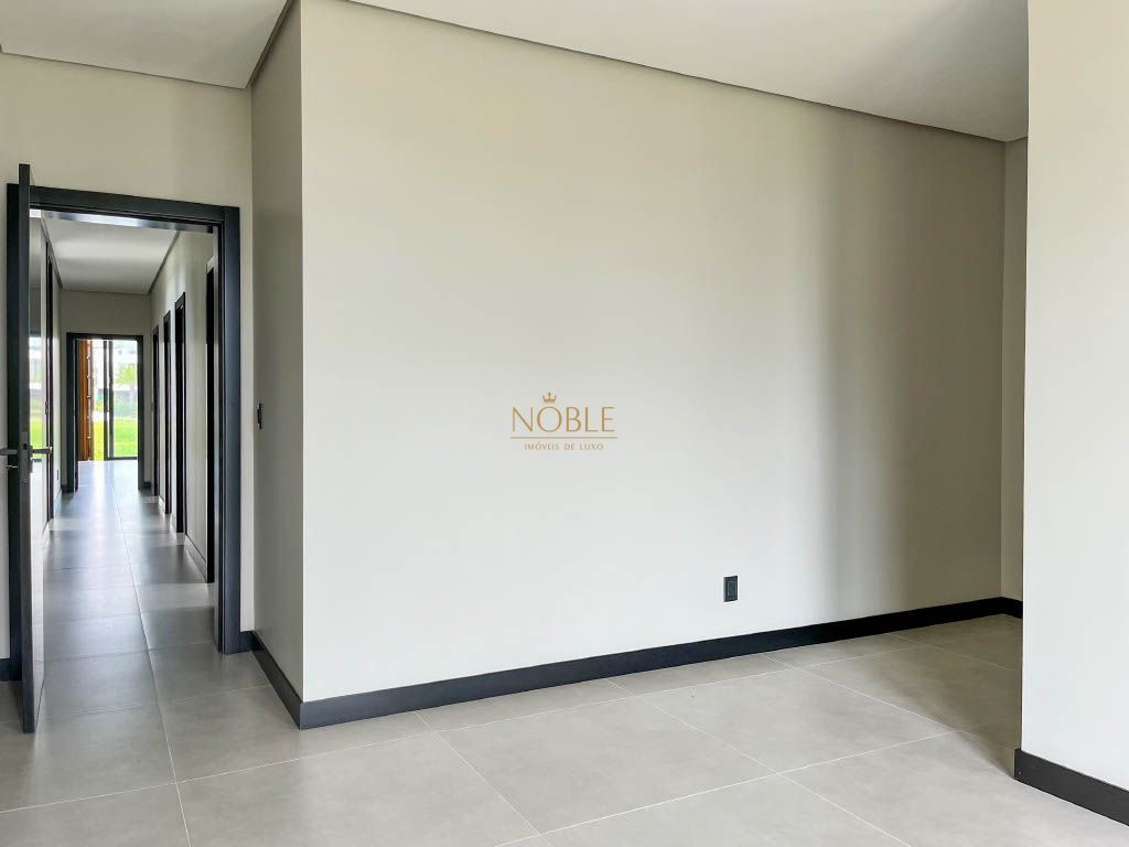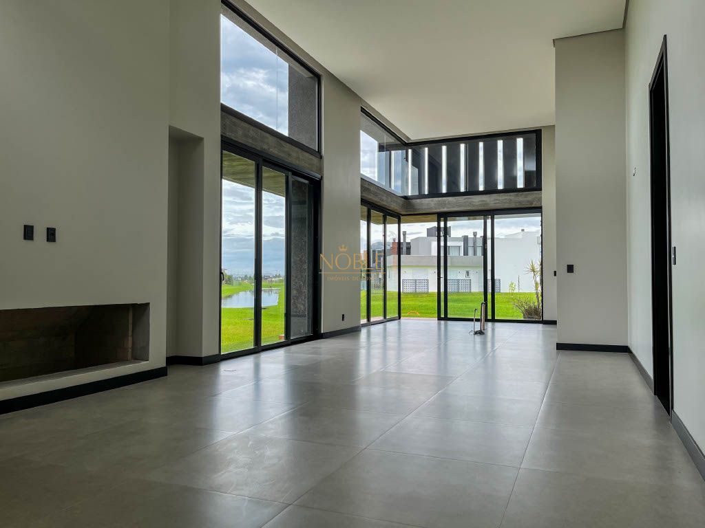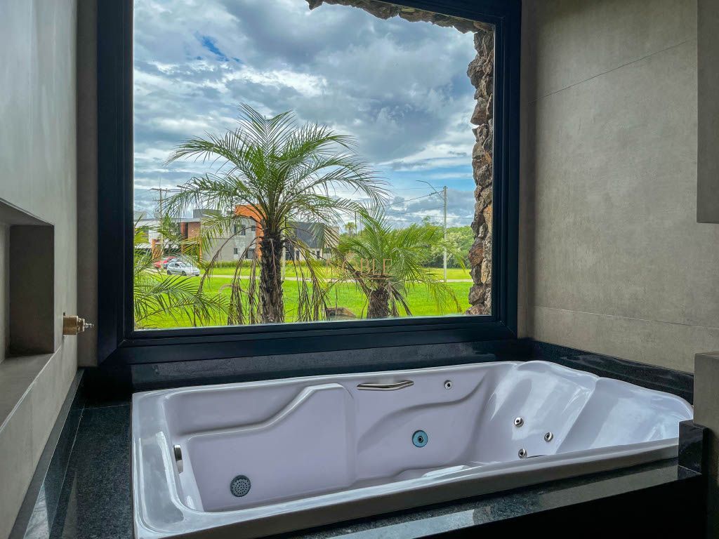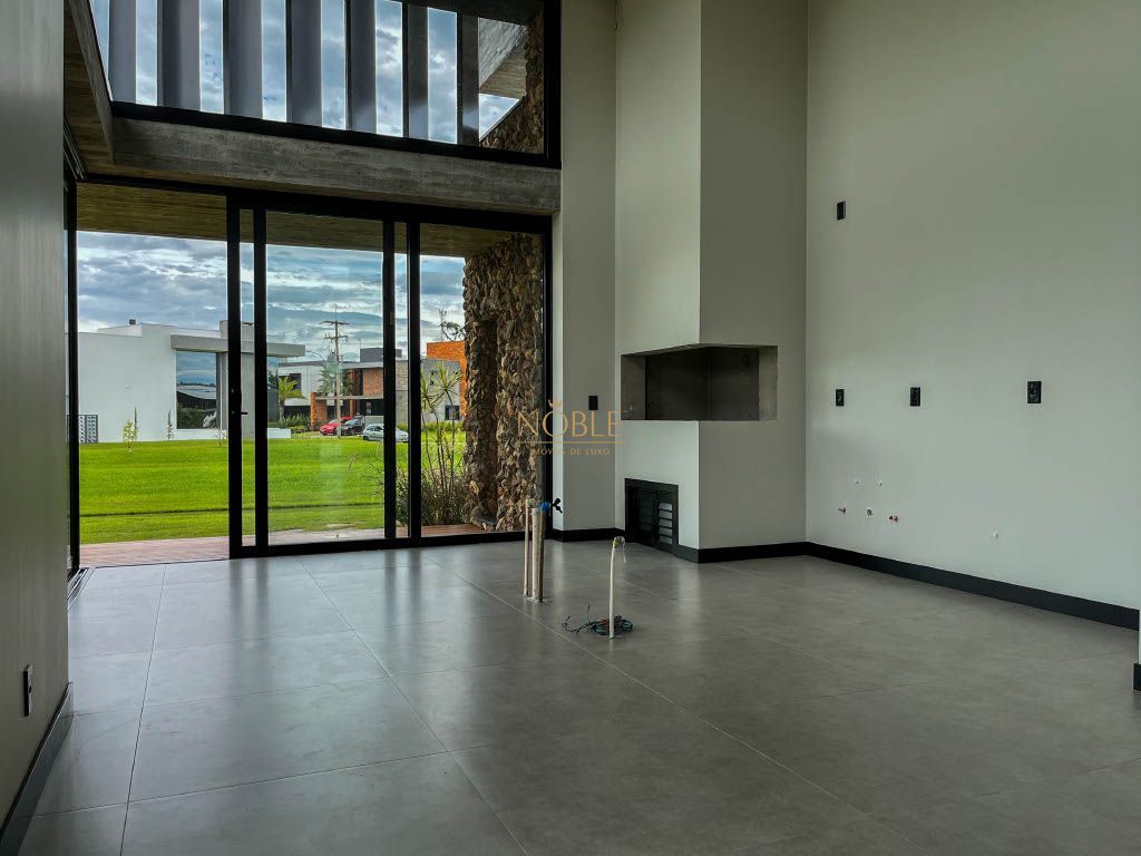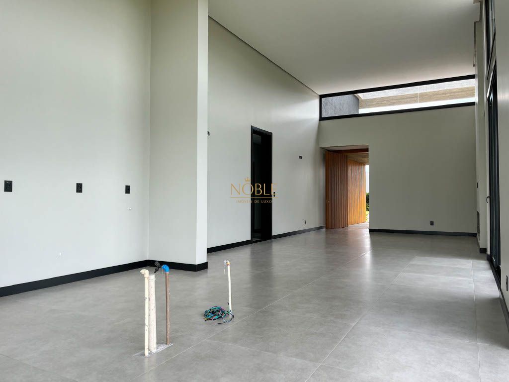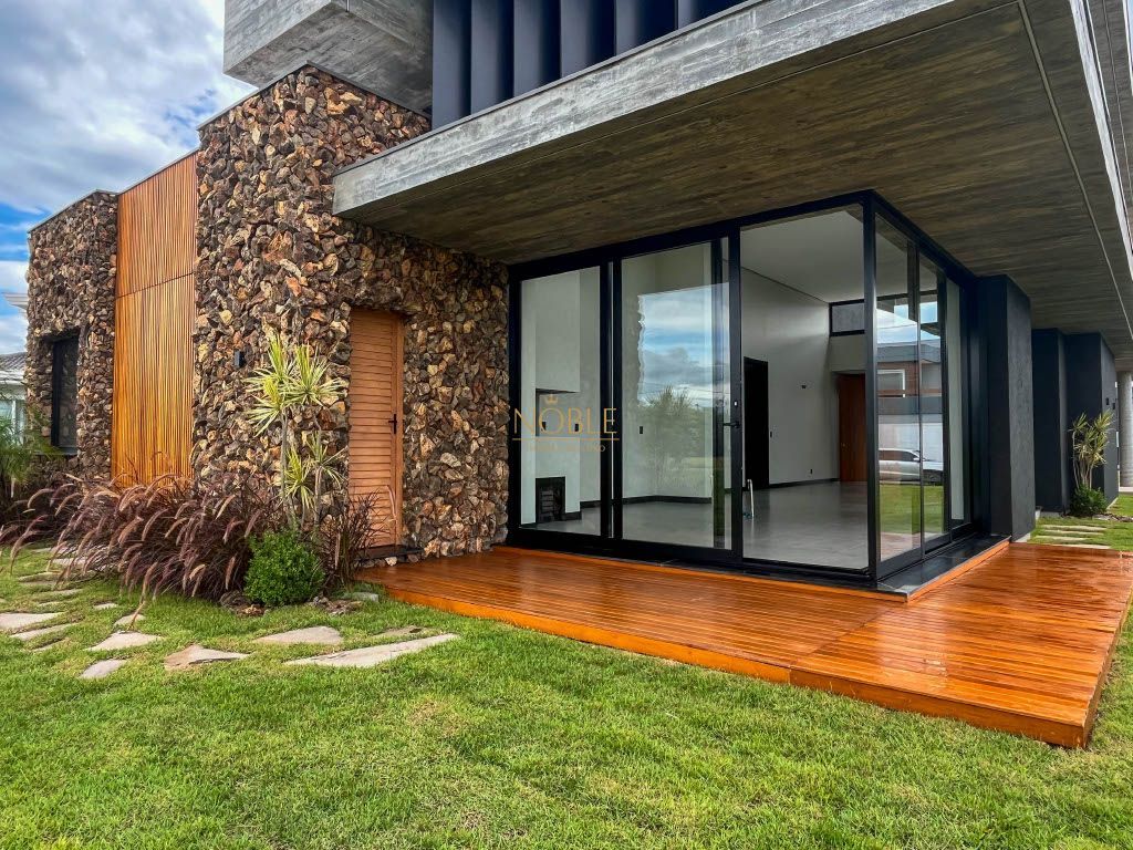 Linda casa térrea com uma fachada imponente e uma combinação de materiais nobres, esta casa é uma obra de arte arquitetônica que mistura o estilo clássico com o moderno, além disso esta casa está localizada no condomínio Reserva das Águas em um lote com fundos para o lago.