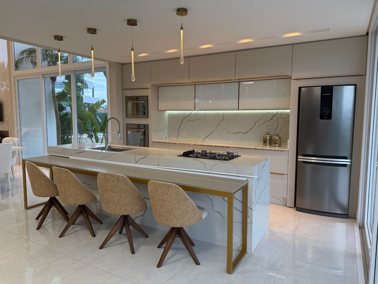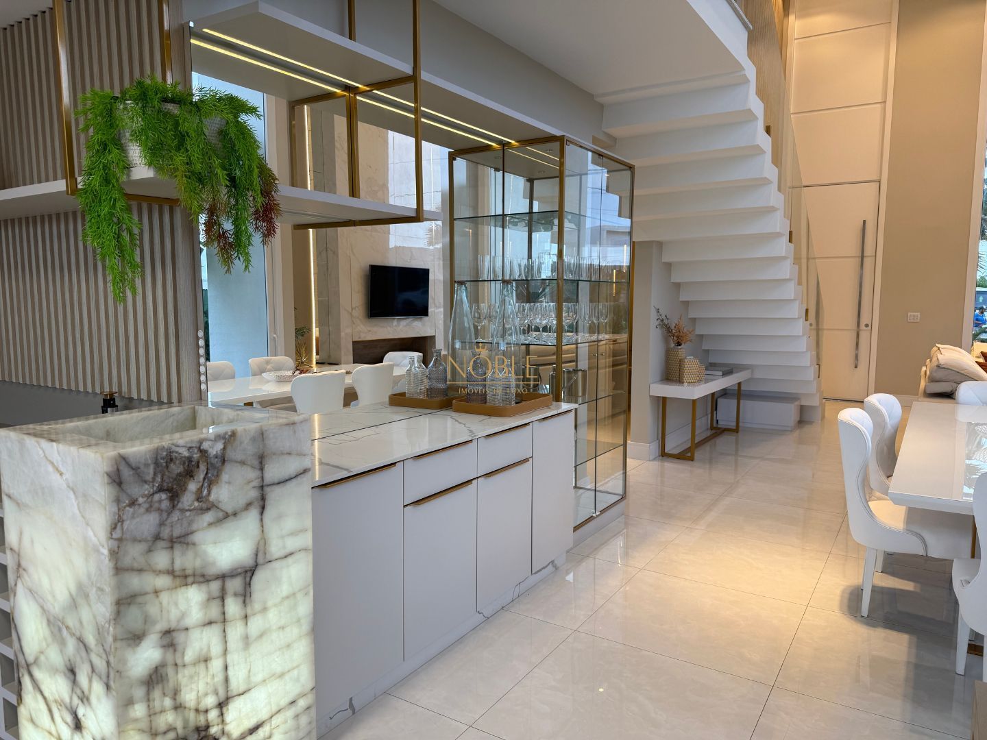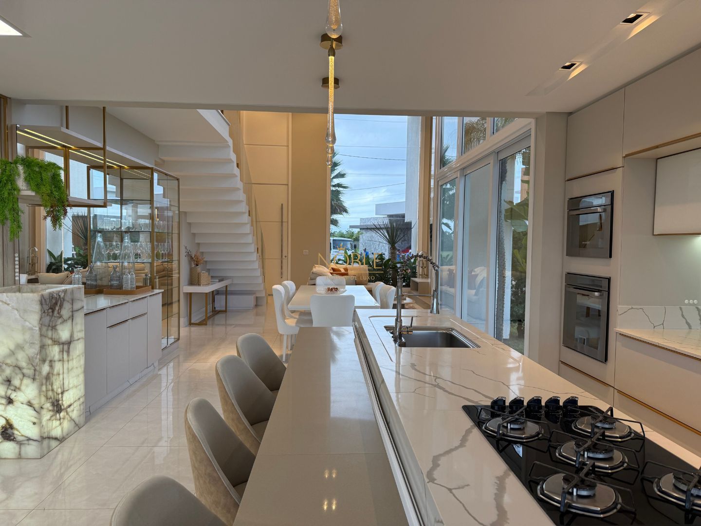 Com 359m² de área privativa em um terreno de 577m², esta casa nova oferece o equilíbrio perfeito entre sofisticação e funcionalidade. São 4 suítes espaçosas, 5 banheiros, ampla sala de estar e jantar com pé-direito elevado, além de cozinha com espaço gourmet integrado e deck molhado – ideal para receber bem e viver com conforto.