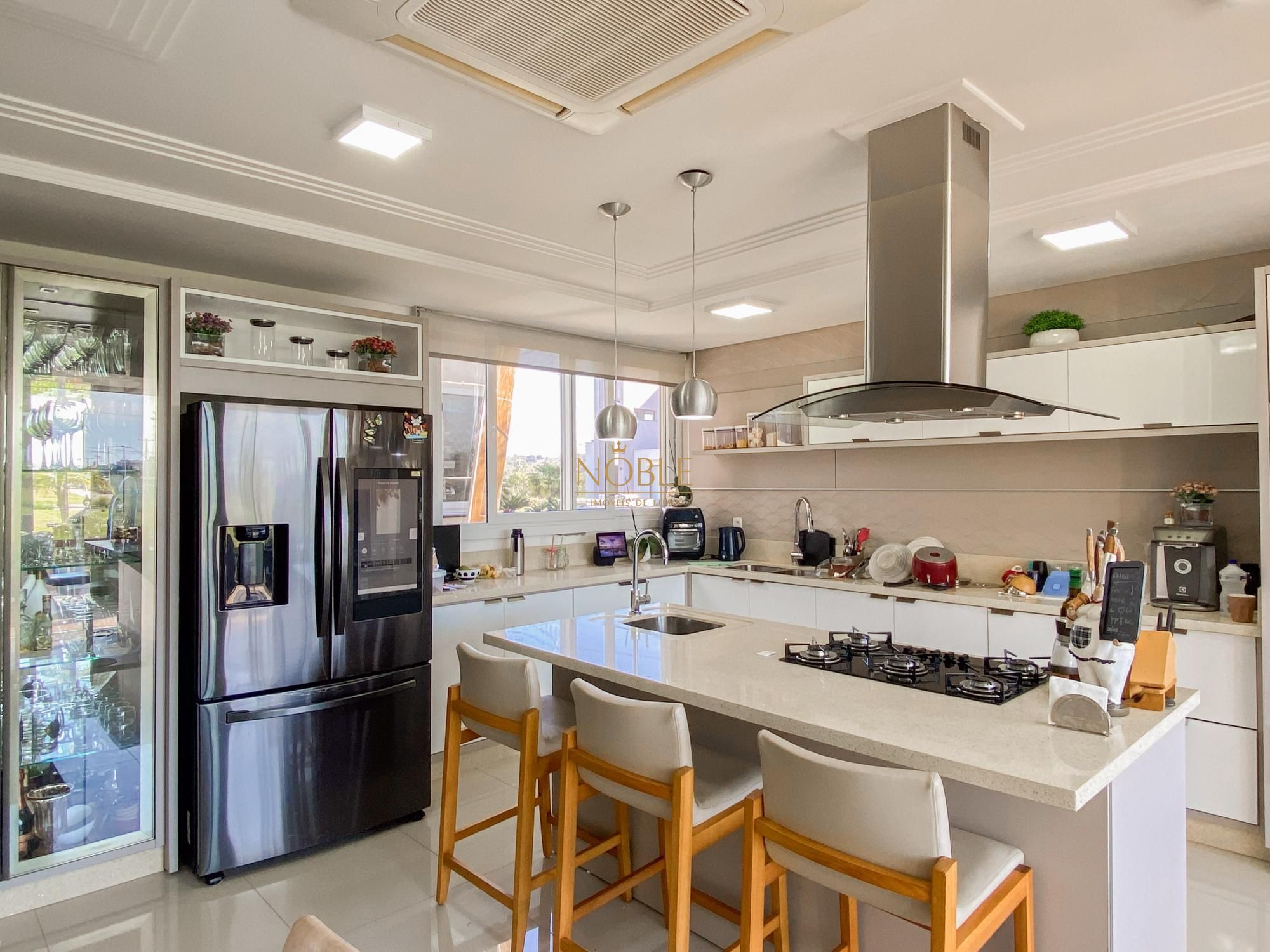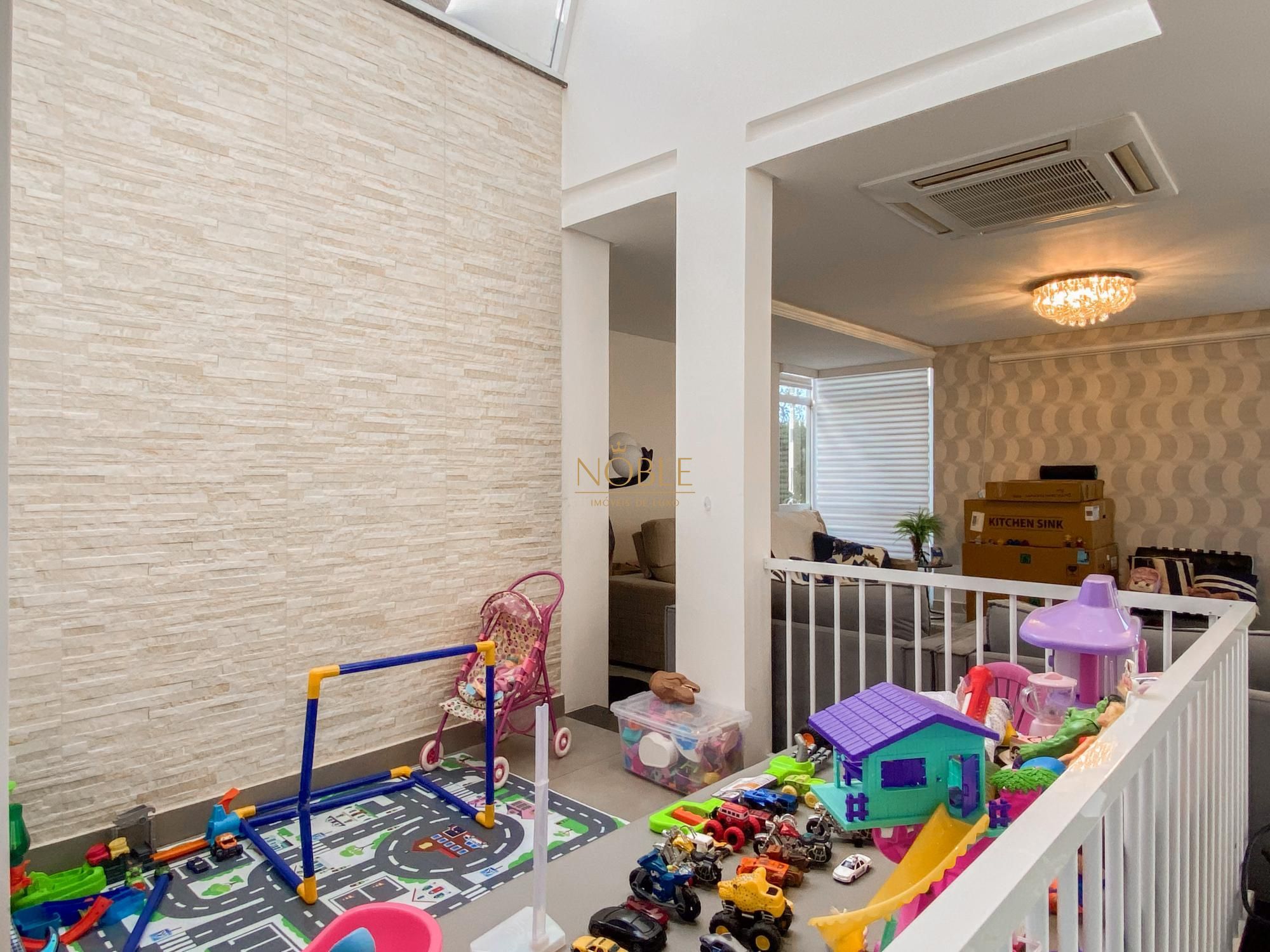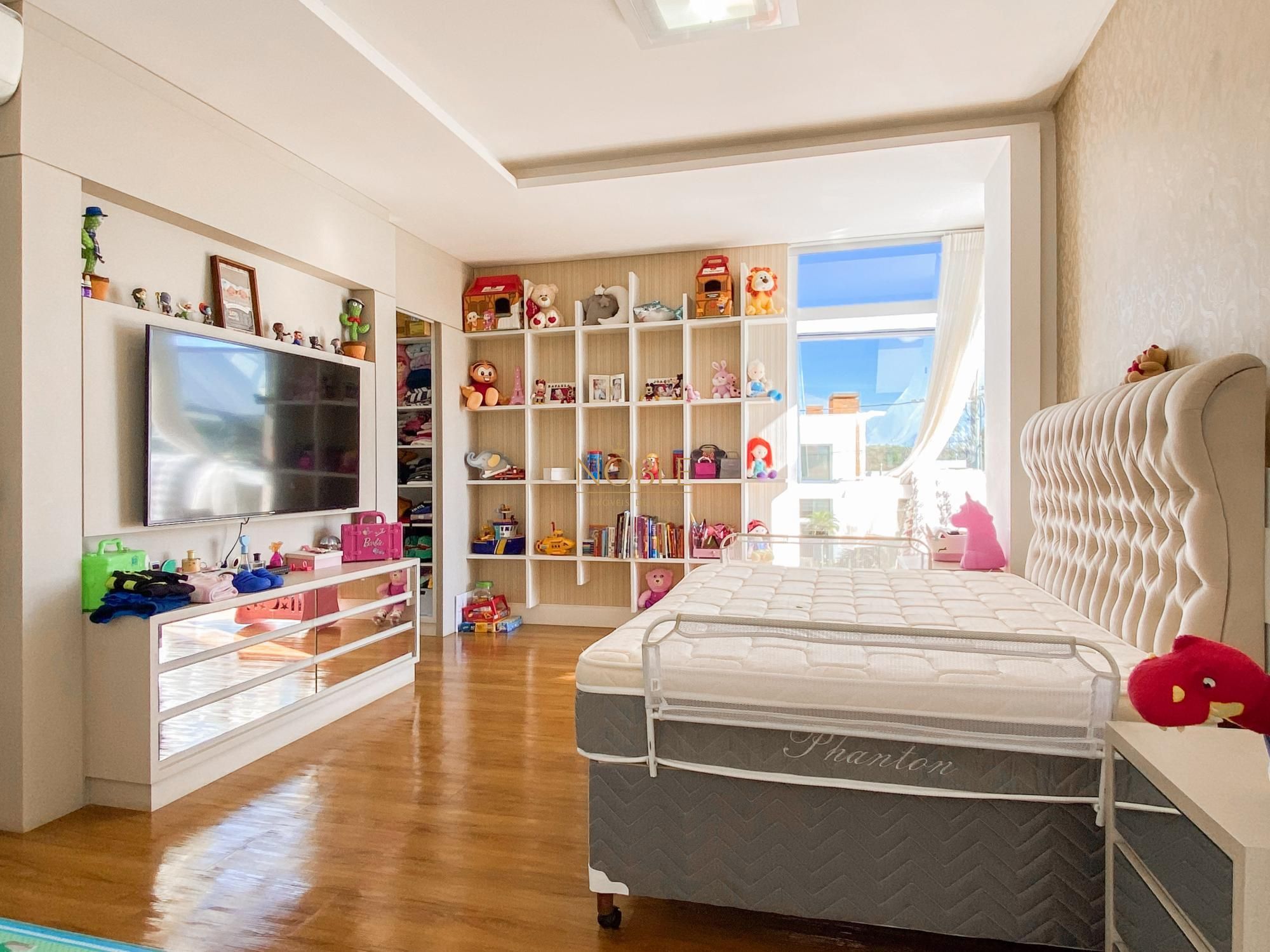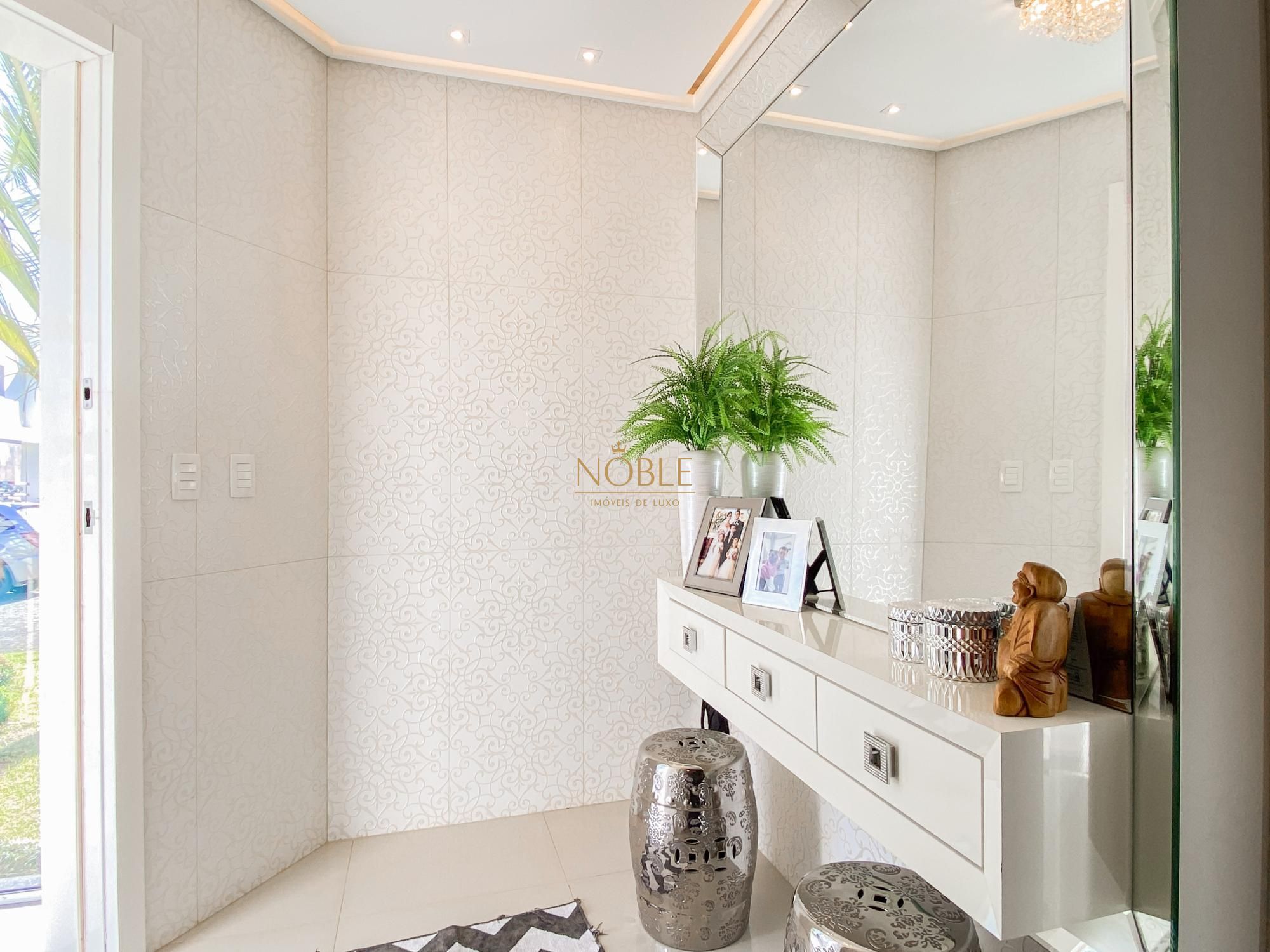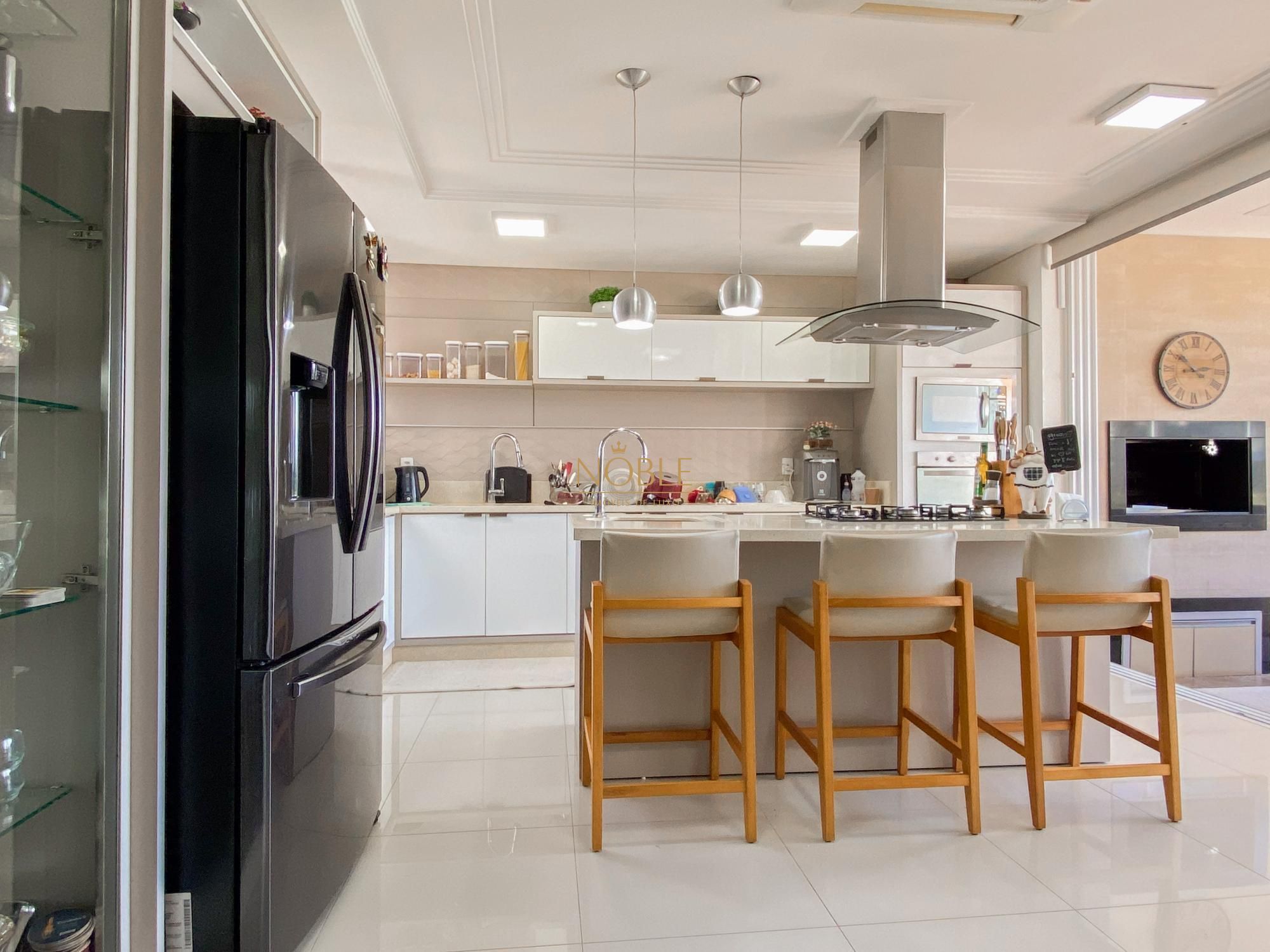 São 450m² bem distribuídos em 4 suites sendo 2 com closet, escritório, sala de estar, brinquedoteca, lavabo, cozinha equipada, espaço gourmet com churrasqueira, espaço externo com deck e jacuzzi, lavanderia e 4 vagas de garagem.