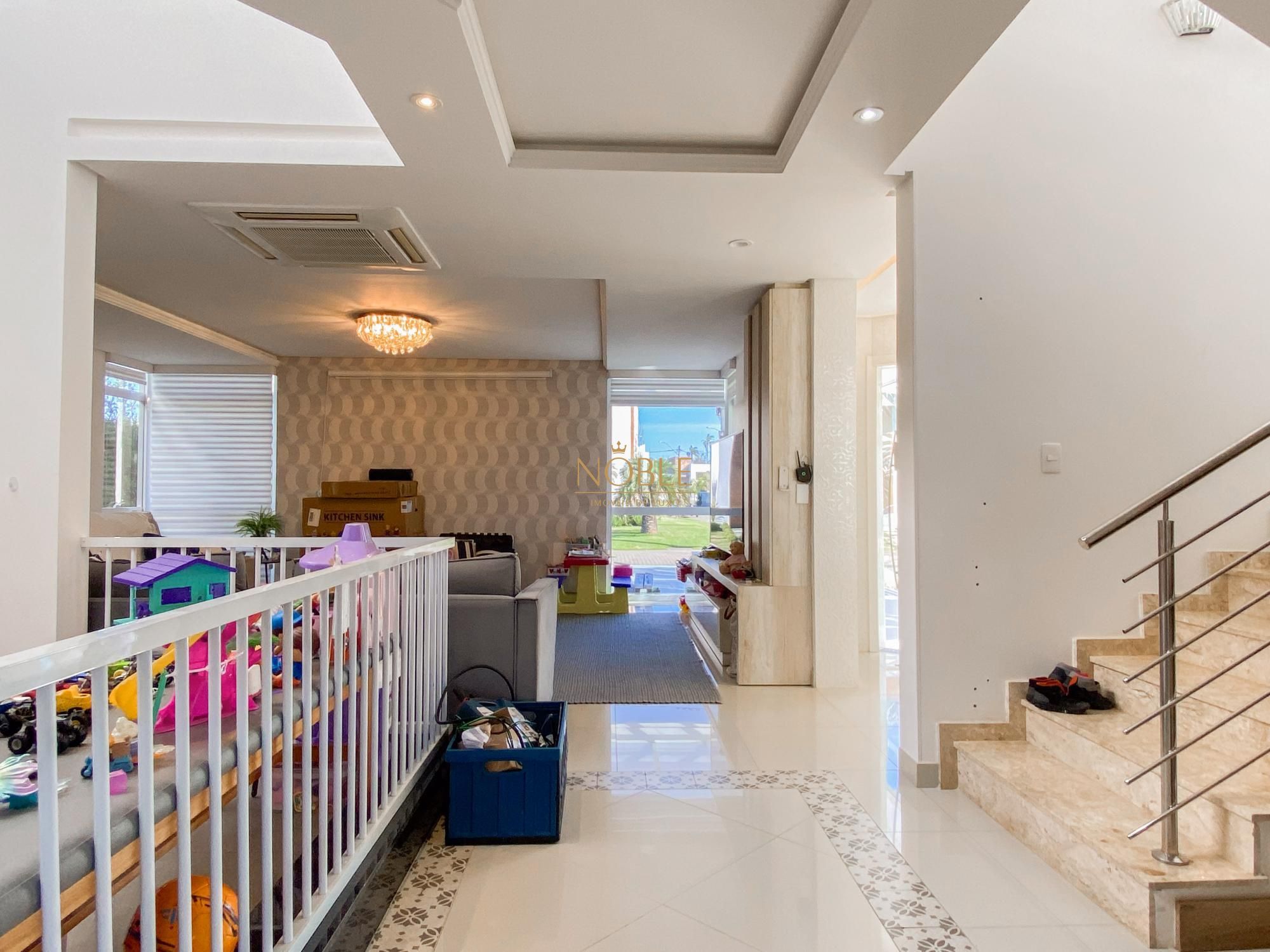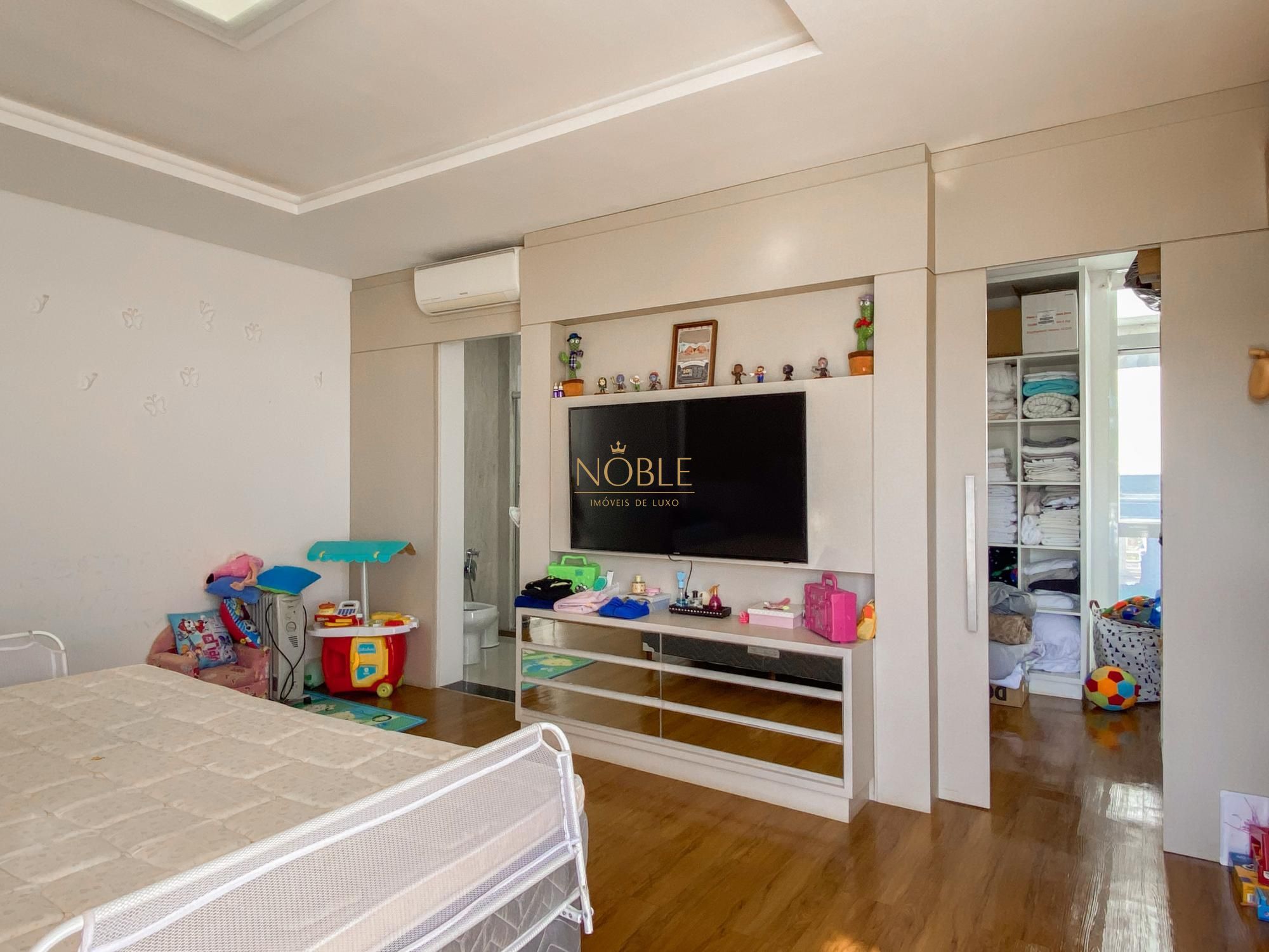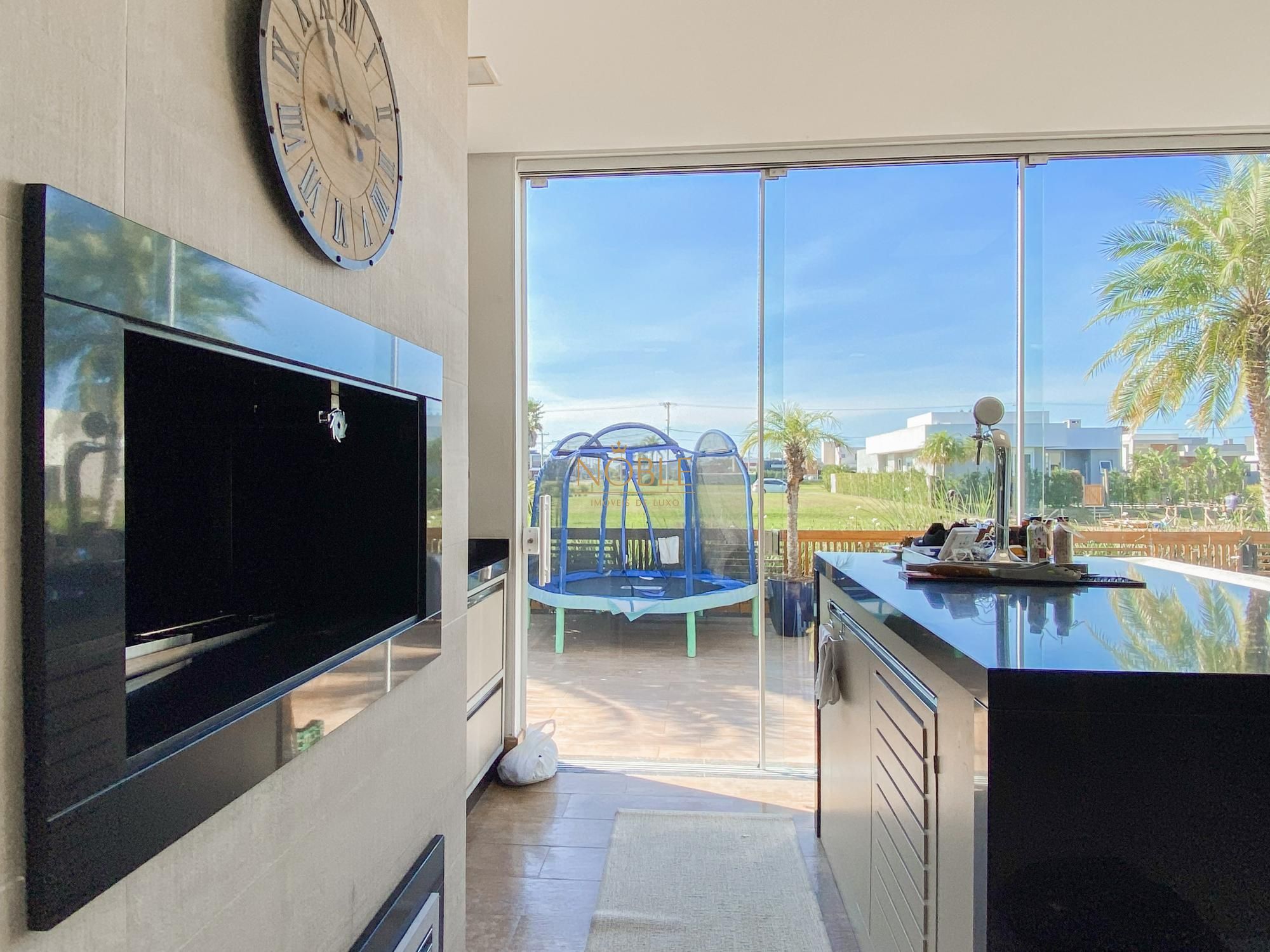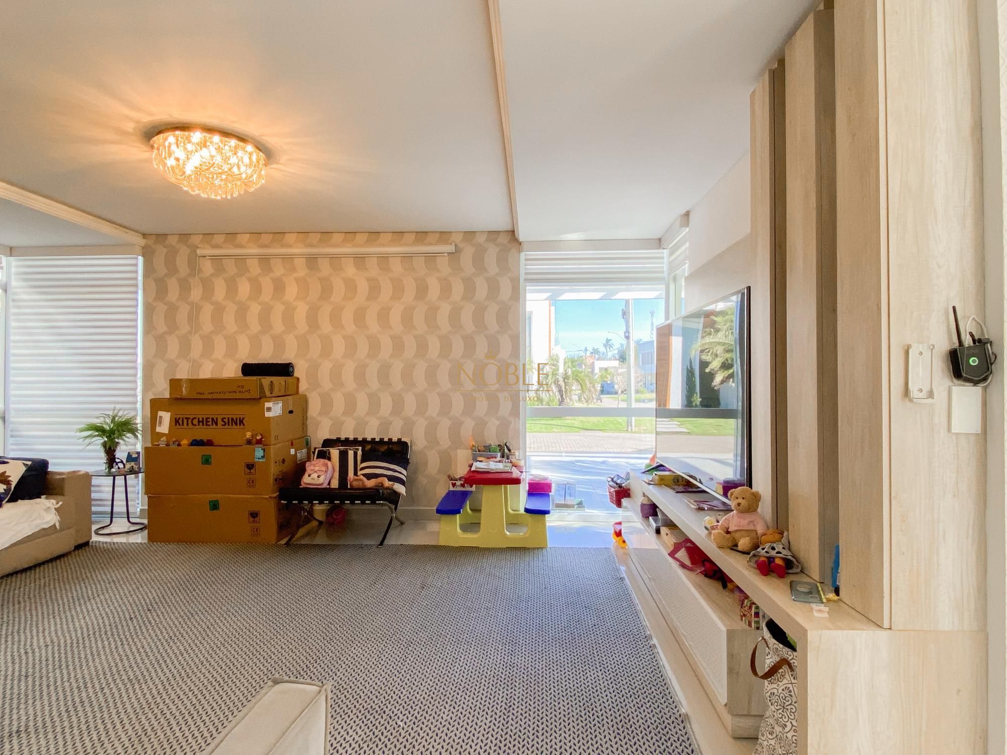 São 450m² bem distribuídos em 4 suites sendo 2 com closet, escritório, sala de estar, brinquedoteca, lavabo, cozinha equipada, espaço gourmet com churrasqueira, espaço externo com deck e jacuzzi, lavanderia e 4 vagas de garagem.