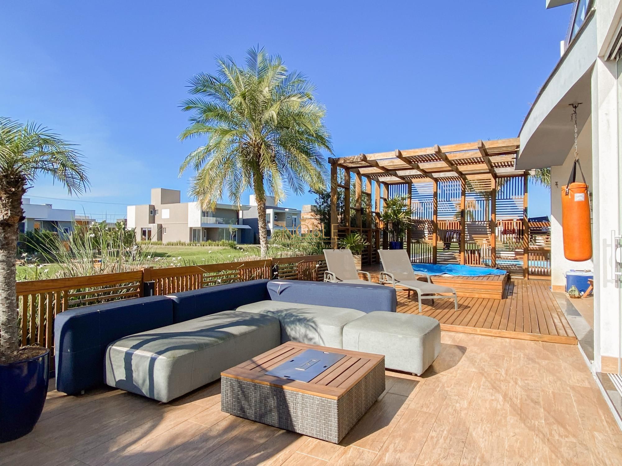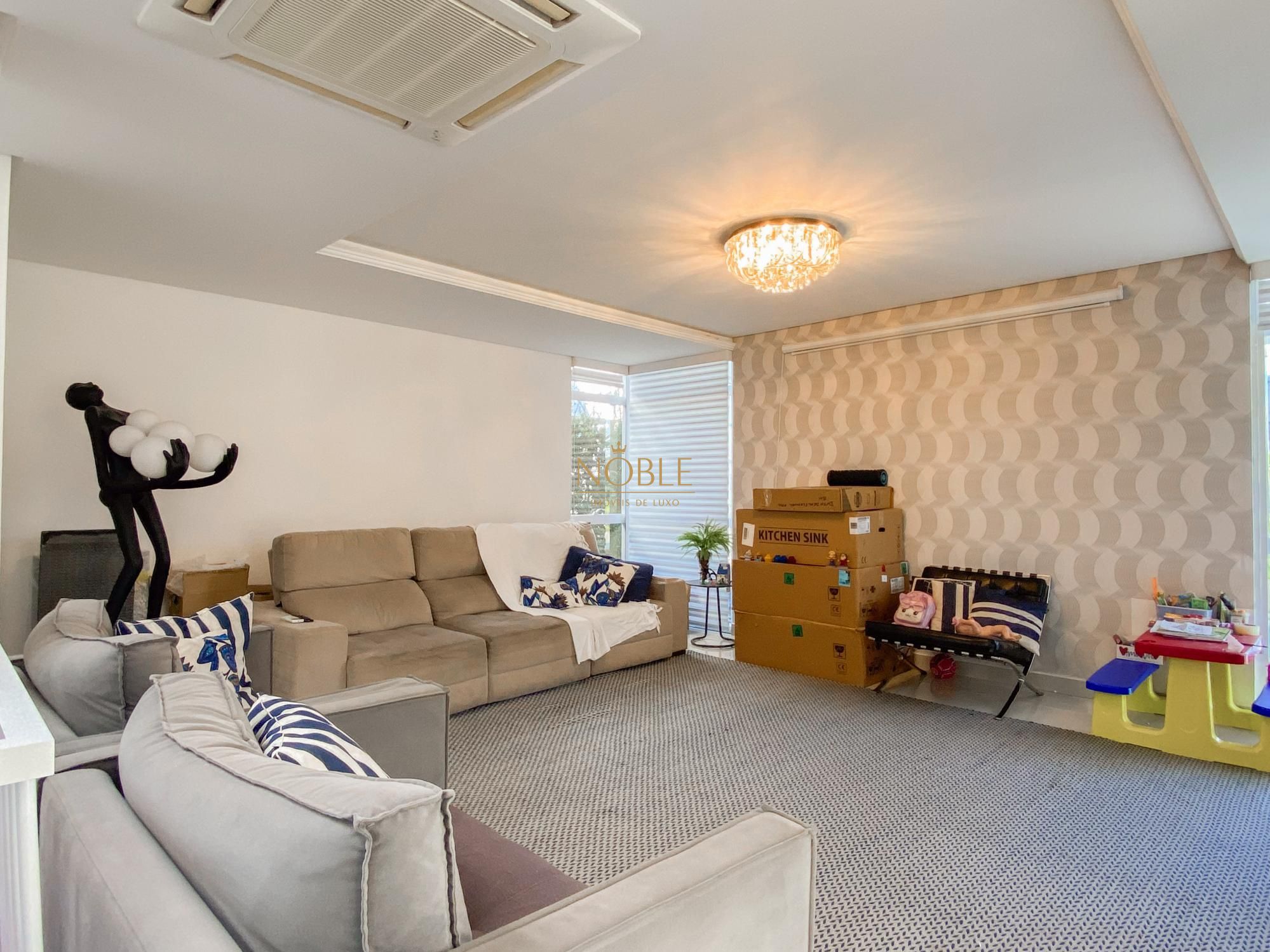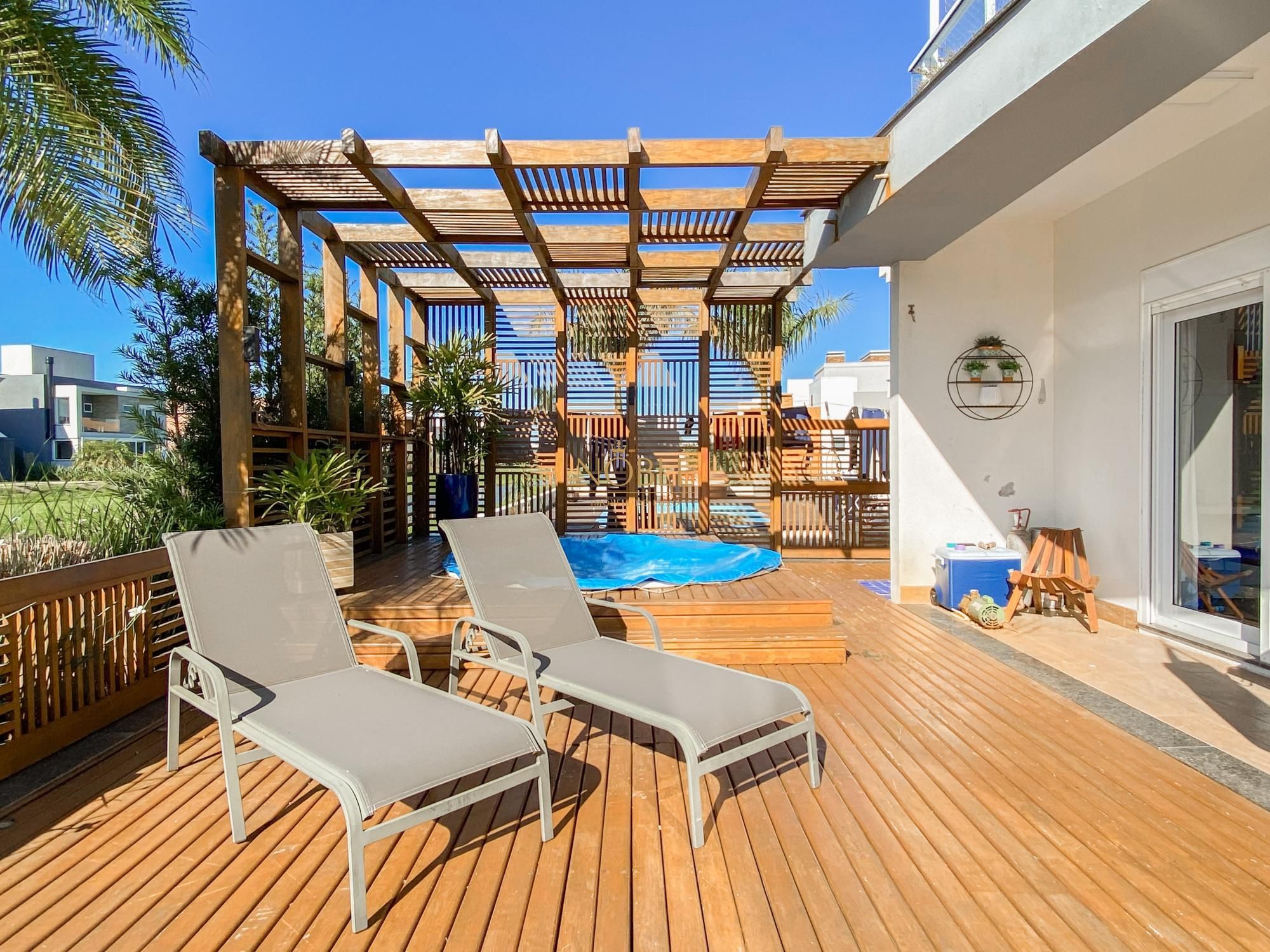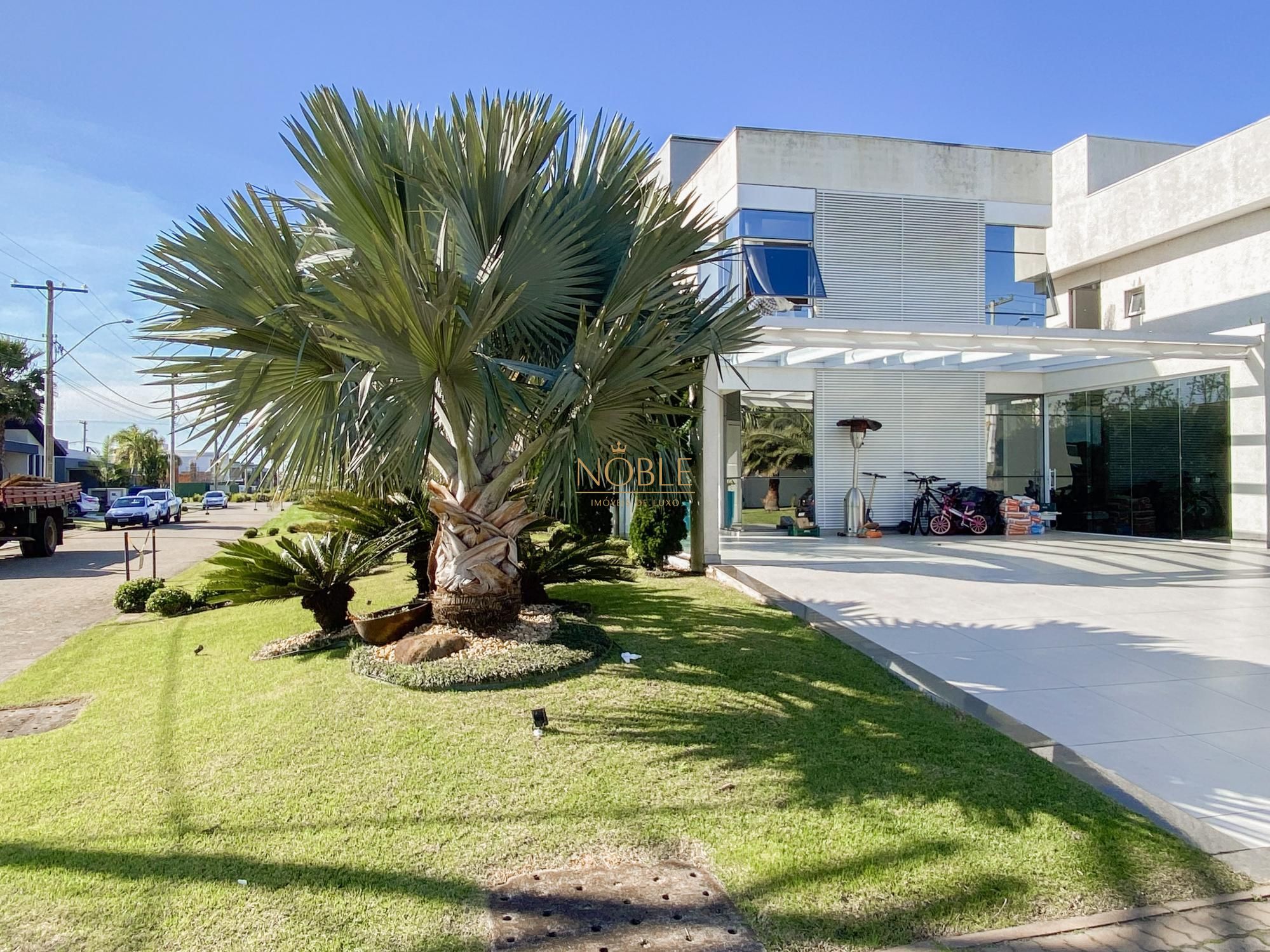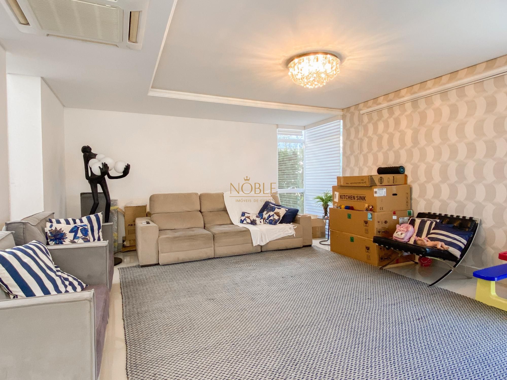 São 450m² bem distribuídos em 4 suites sendo 2 com closet, escritório, sala de estar, brinquedoteca, lavabo, cozinha equipada, espaço gourmet com churrasqueira, espaço externo com deck e jacuzzi, lavanderia e 4 vagas de garagem.