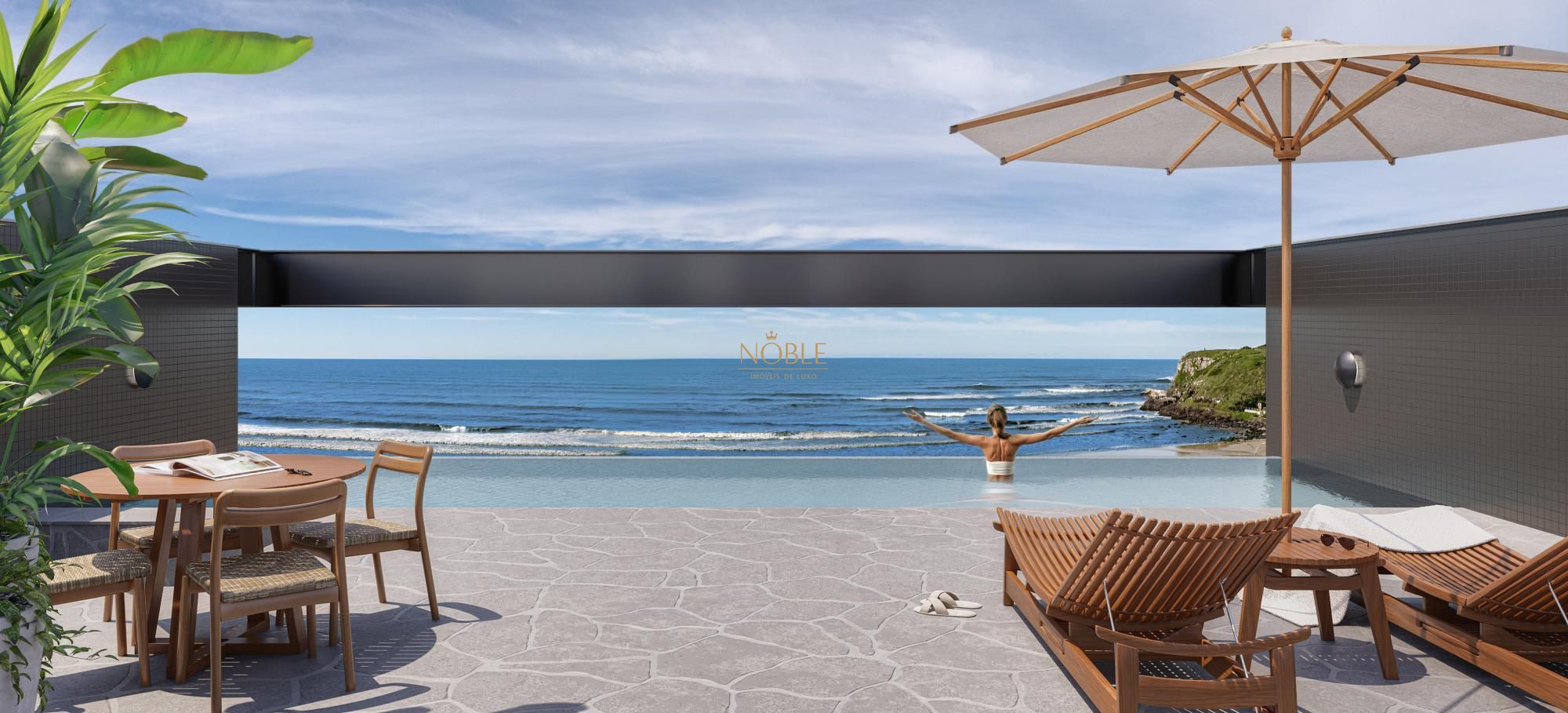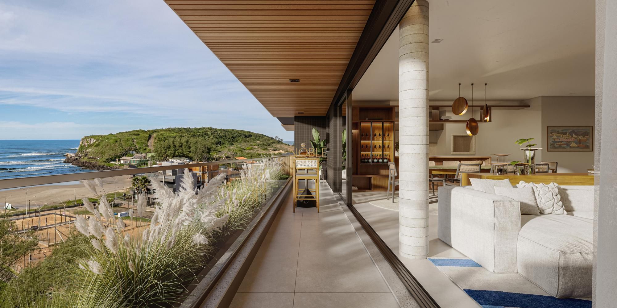 Apartamento duplex exclusivo com vista eterna para o mar, a menos de 100 metros da praia. O duplex é de frente e possui três suítes, um lavabo, living com sacada e cozinha com churrasqueira distribuídos em 171,65m². Além disso, o empreendimento conta com academia, sala de massagem, espaço gourmet, lounge serra, lounge mar e piscina: uma infraestrutura completa para morar e desfrutar de uma das vistas mais deslumbrantes da Praia da Cal em Torres.