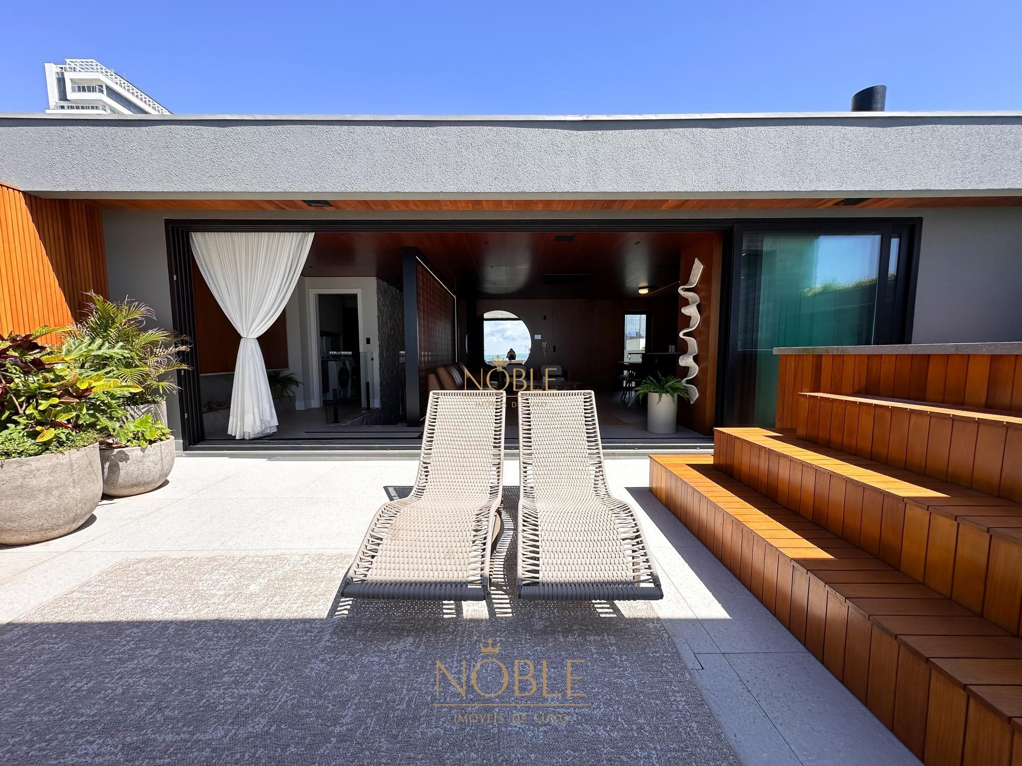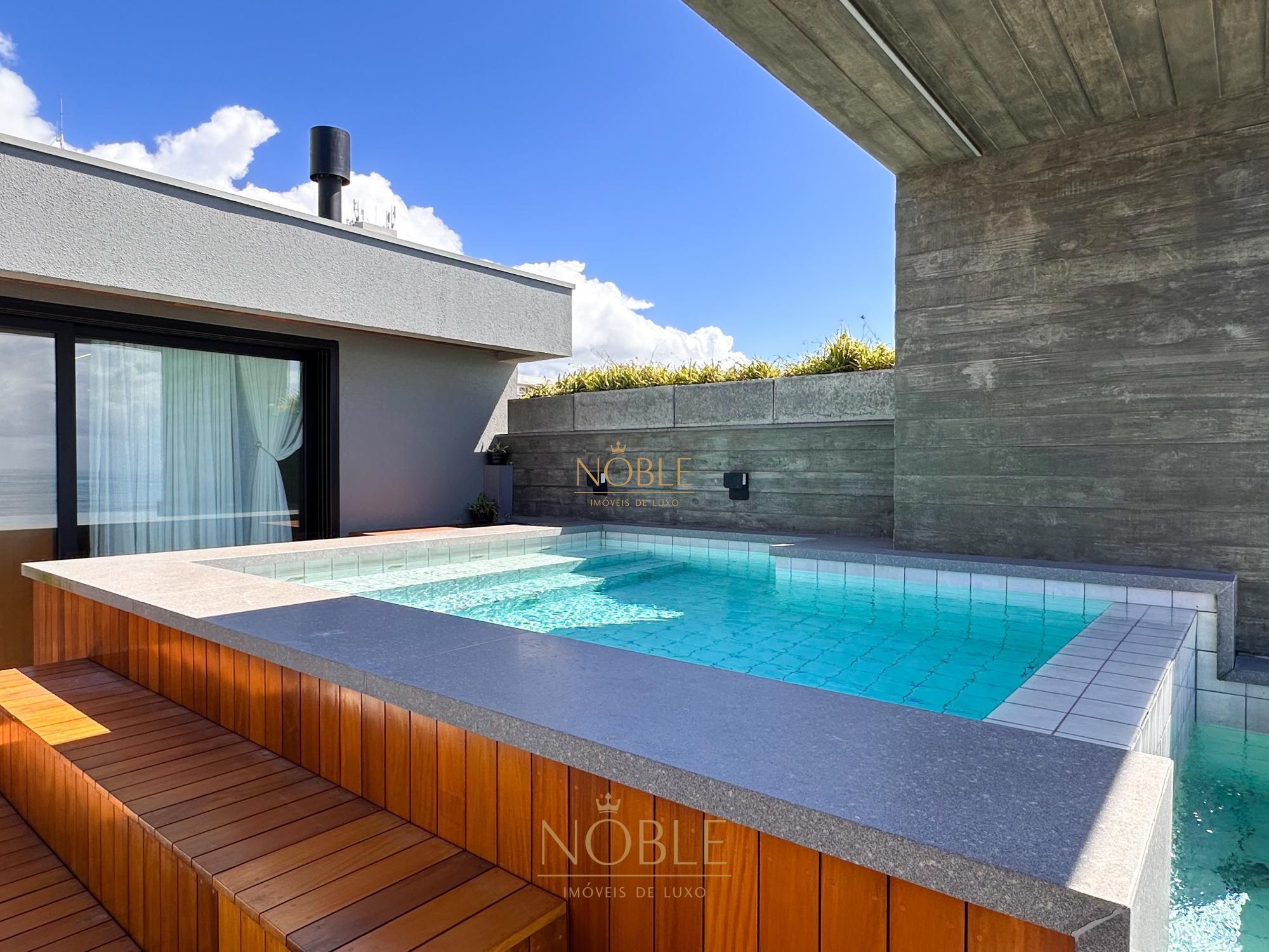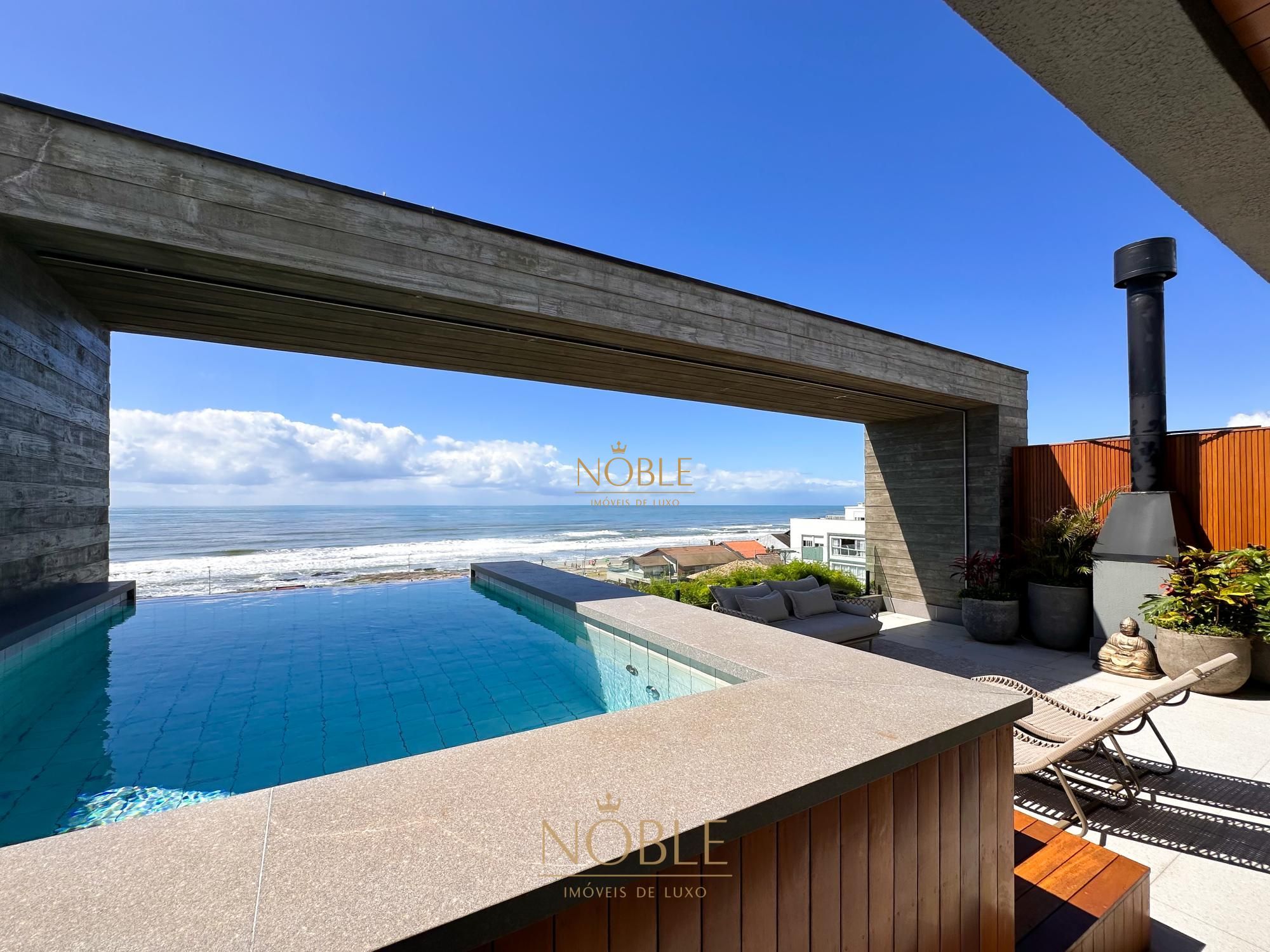 Na área externa, a cobertura oferece um espaço ideal para momentos de lazer e contemplação, com piscina privativa e um cenário único de frente para o mar. Dispõe ainda de 3 vagas de garagem, completando a proposta de exclusividade e praticidade.